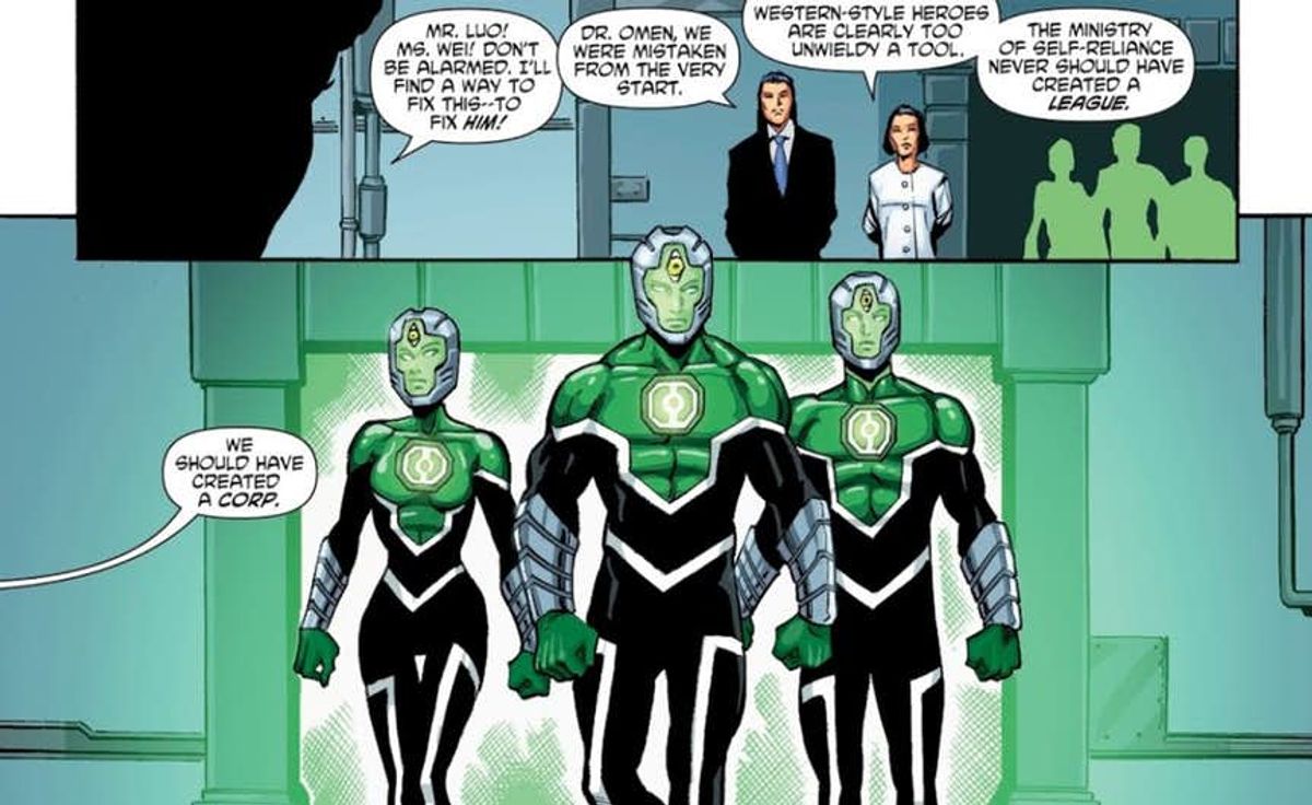 Sulle pagine di New Super-Man, lo scrittore Gene Luen Yang sta dando vita a un pantheon di supereroi cinesi composto delle versioni asiatiche dei più noti campioni dell'Universo DC. Il tutto fa parte di un programma (pseudo) segreto di un'agenzia ministeriale del governo cinese che ha il compito di creare una propria Justice League che possa difendere la nazione da ogni genere di minaccia. Dopo aver creato le iterazioni di Batman, Wonder Woman e Flash - oltre ovviamente al titolare della testata - è ora giunto il momento dell'esordio dei Guerrieri di Smeraldo.