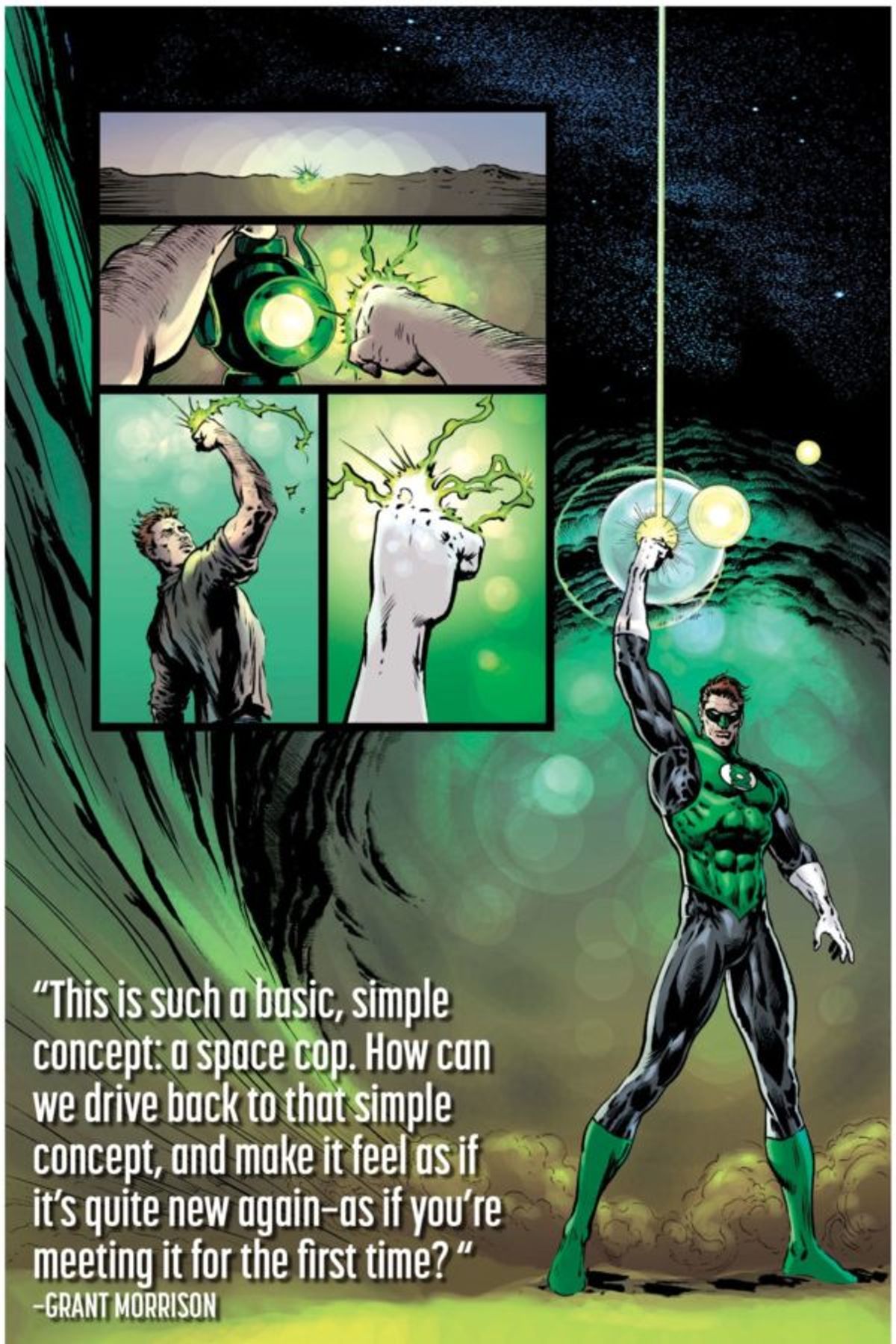 C'è grandissima attesa per il ritorno dello scrittore scozzese su una serie DC Comics in continuity, così come è molta la curiosità attorno a come Morrison giocherà con i tanti elementi della mitologia cosmica dei Guerrieri di Smeraldo dell'Universo DC.