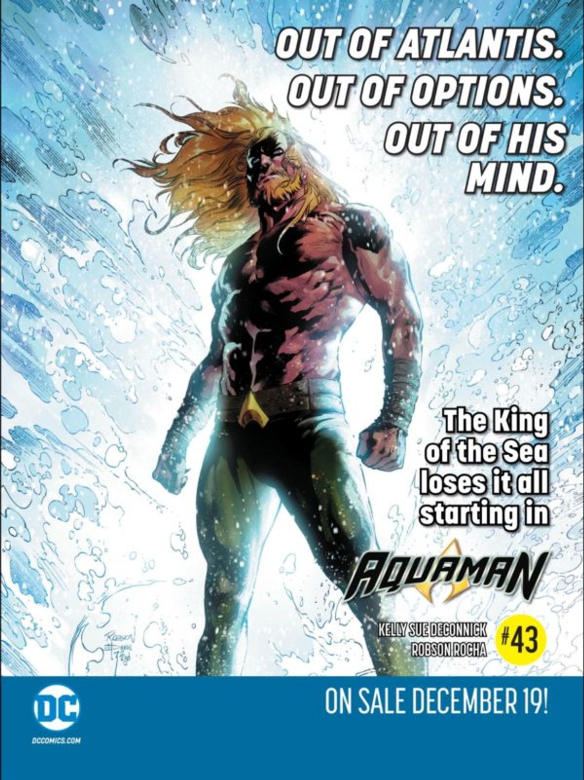 Sempre sulle pagine del suddetto albo è stato diffuso anche un primissimo teaser del rilancio di Aquaman scritto da Kelly-Sue DeConnick e disegnato da Robson Rocha. Stando alle prime indiscrezioni, la sceneggiatrice dovrebbe essere al lavoro su una storia dal taglio mitologico che vede Aquaman alla ricerca di sua madre, andando a rivisitare le stesse origini del personaggio.