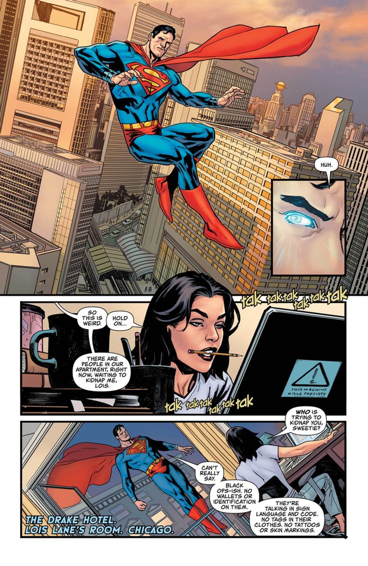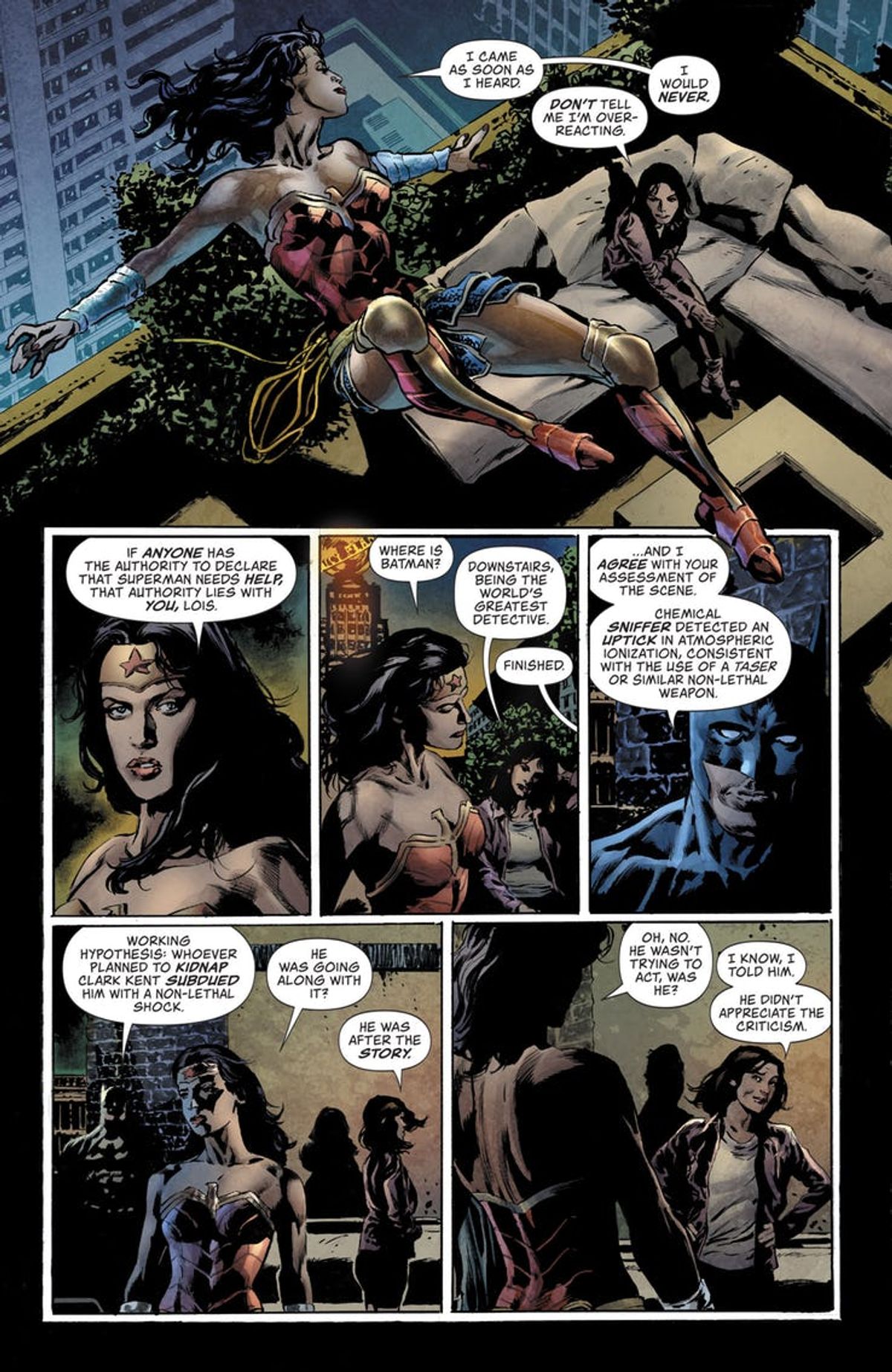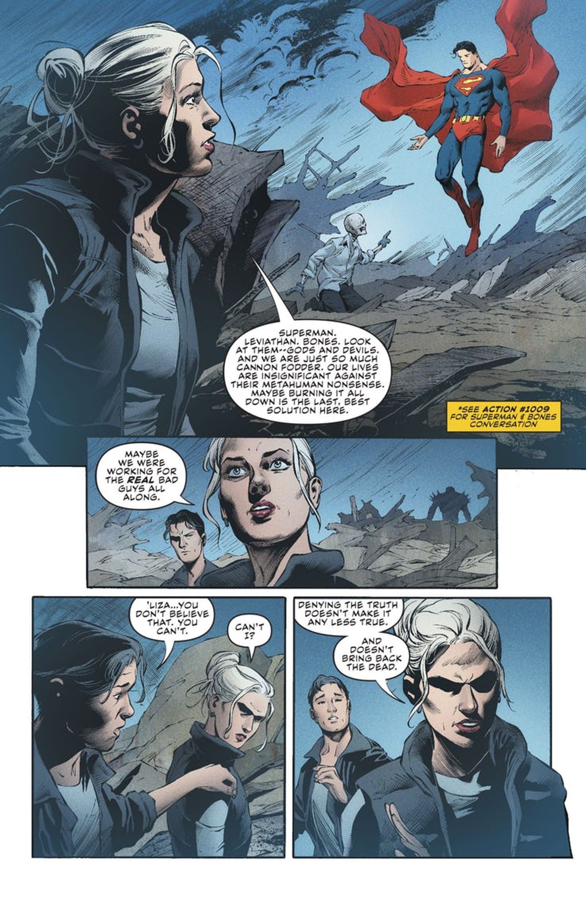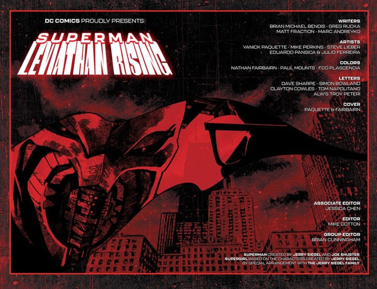 L'albo è uscito nella giornata di ieri negli Stati Uniti, e per l'occasione è stata diffusa una corposa selezione di tavole, che trovate dopo la sinossi e la copertina di Paquette.Una squadra di sceneggiatori e disegnatori all-star lascia emergere la nuova minaccia di Leviathan e prepara la strada per le nuove serie regolari in arrivo a giugno, una dedicata a Jimmy Olsen, scritta da Matt Fraction e disegnata da Steve Lieber, e una a Lois Lane, scritta da Greg Rucka e disegnata da Mike Perkins. Mentre Leviathan mette in atto un piano per sconfiggere Superman, sarà compito di Lois, Jimmy e degli eroi dell'Universo DC salvare l'Uomo d'Acciaio.