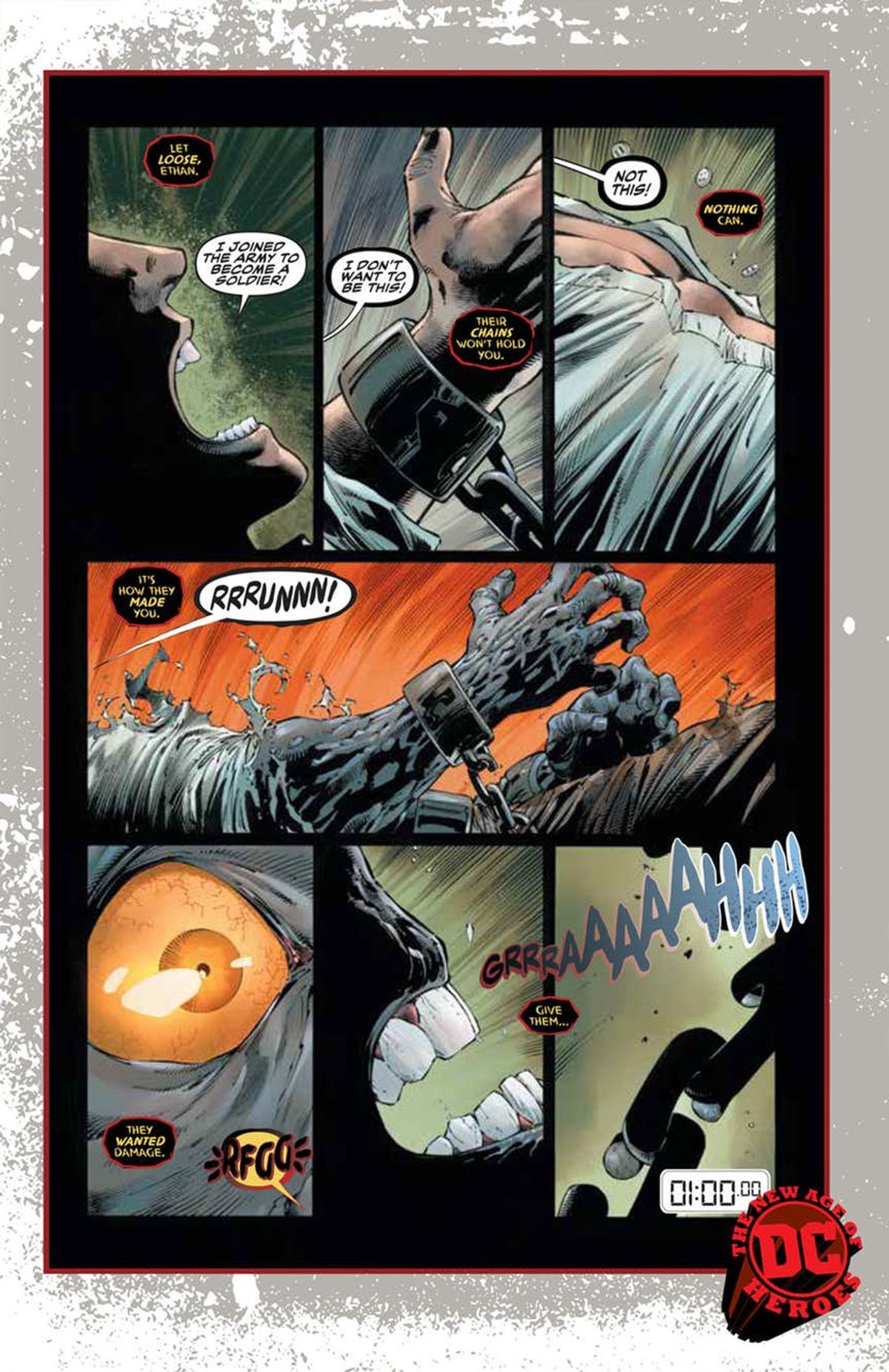 Classificato come proprietà vivente del governo, respirando al ritmo di una bomba a orologeria, Ethan non ha alcun controllo quando il mostro è libero. La bestia è più economica di una testata nucleare e due volte più efficace, ed Ethan combatte per contenere la distruzione generata quando (il mostro) si scatena per un’ora al giorno. Con tutti coloro che gli sono attorno minacciati, Ethan si strugge per tenere a bada il pericolo che incombe sull’Universo DC.