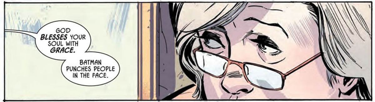King - Molte persone stanno dicendo che Batman #53 - che io ho scritto - mostra un Batman ateo. Non è così che ho interpretato la storia. Ma non penso che la mia interpretazione sia quella più importante. Ad ogni modo, spero che la leggiate e che decidiate con la vostra testa.