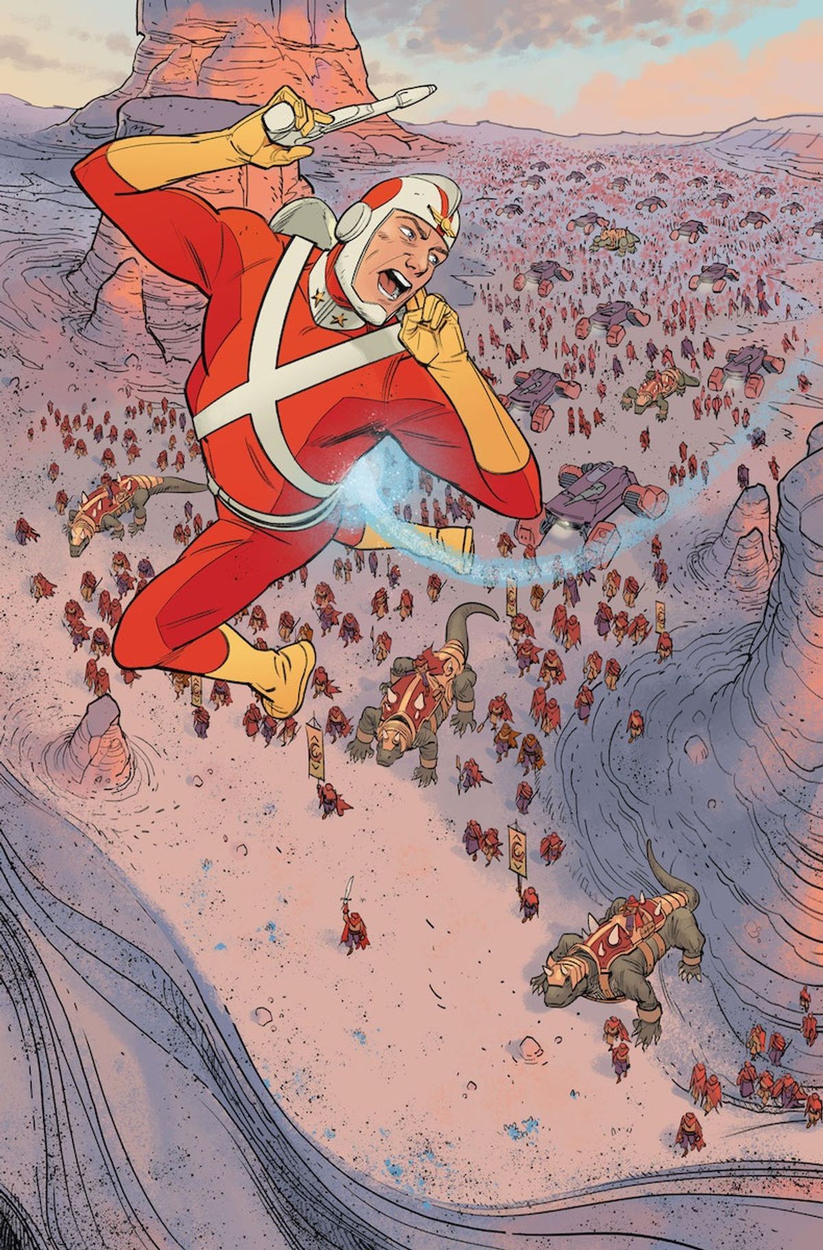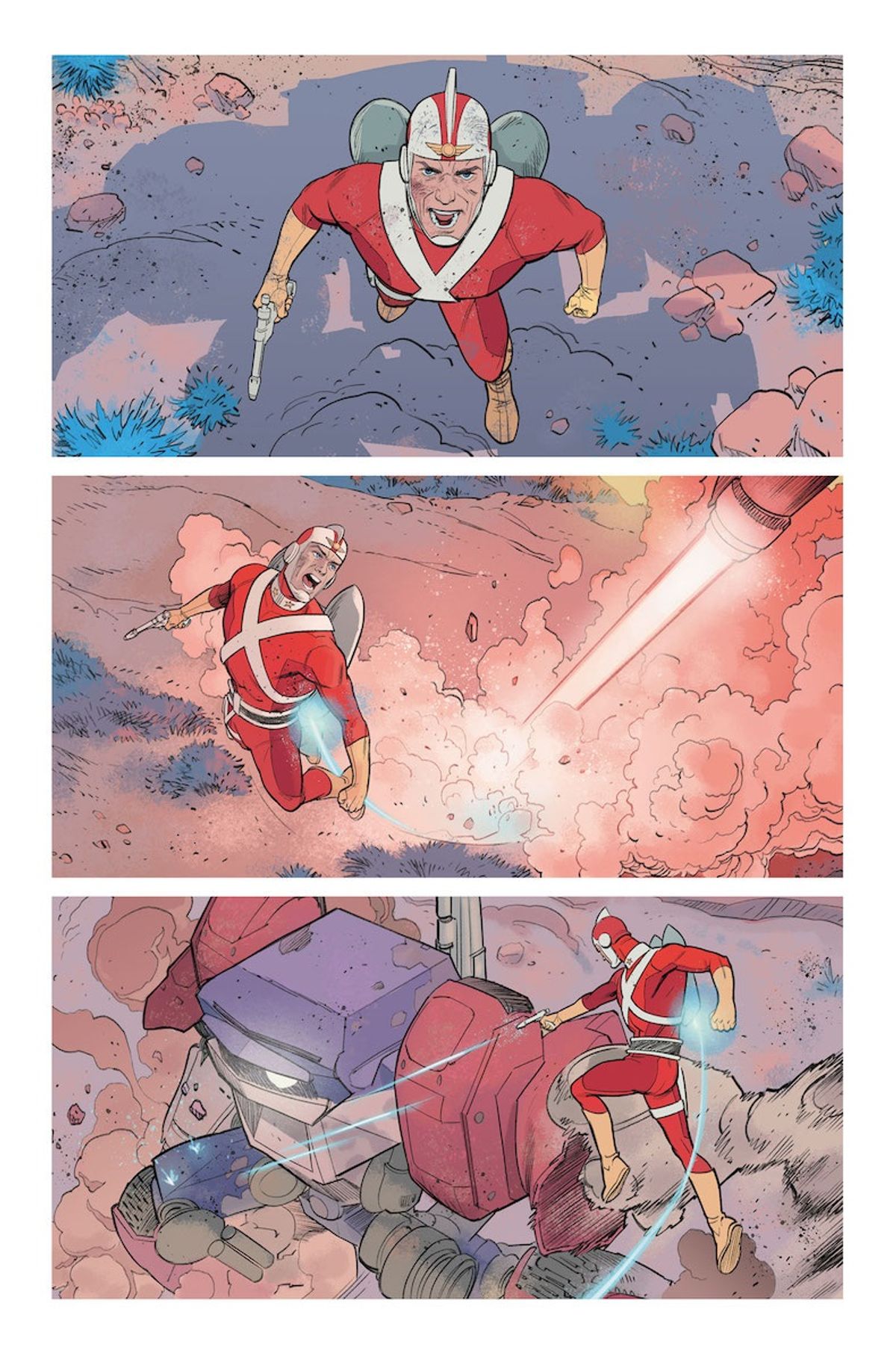 King - Adam Strange appartiene a una nutrita schiera di personaggi di cui fanno parte anche figure come Tarzan e Flash Gordon: uomini imperturbabili dal mento quadrato che fanno fortuna da eroi in terra straniera. Sono la metafora dell'uomo europeo del XIX Secolo, del sogno del colonialismo. Il quale, ovviamente, non somigliava per nulla al modo in cui veniva sognato e raccontato. Ed è proprio questa contraddizione che mi interessa, questa distanza sanguinaria tra il mito e la realtà.