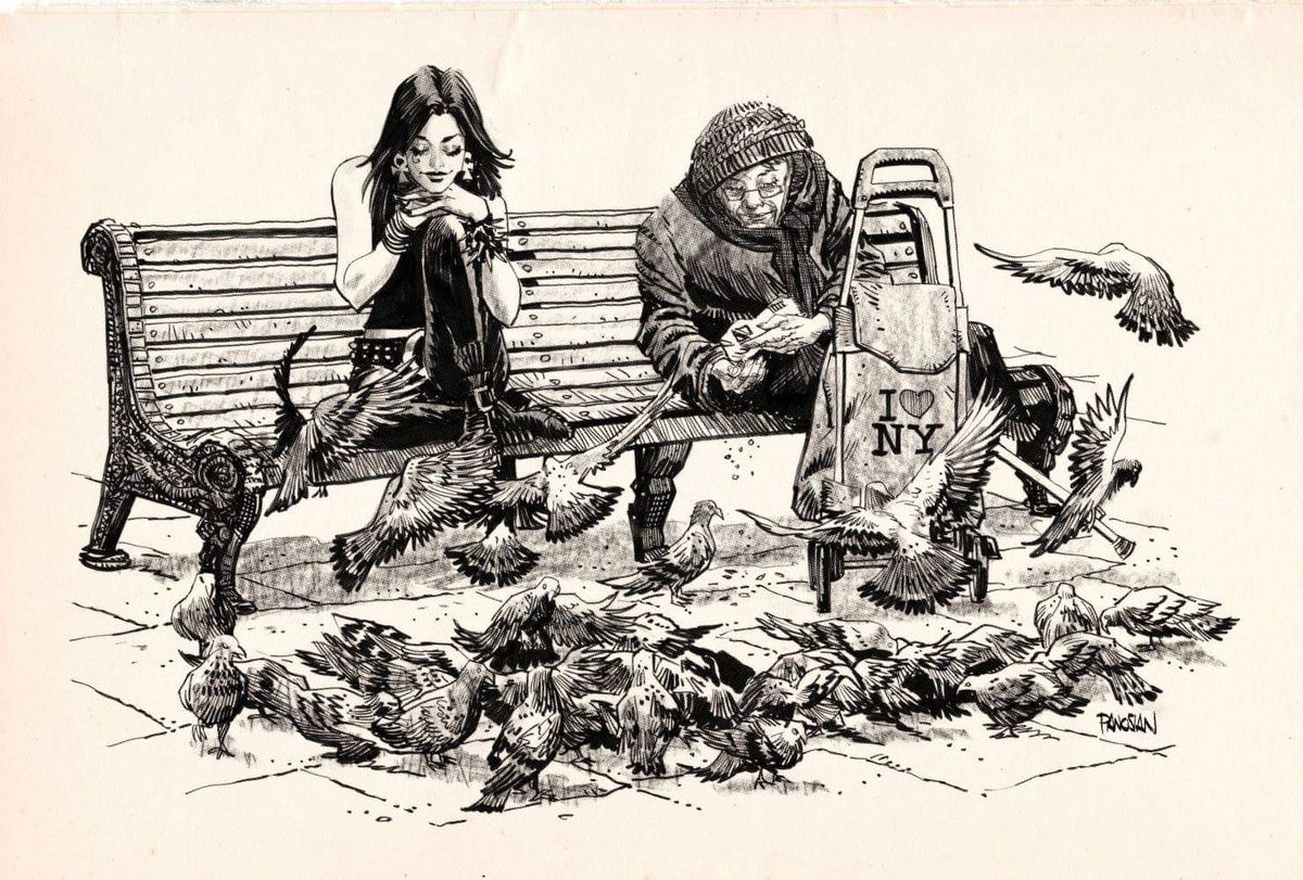 Ogni settimana il canale YouTube Drink & Draw Social Club ospita alcuni disegnatori americani, ai quali viene assegnato un personaggio o un tema sul quale realizzare un'illustrazione. Venerdì scorso la trasmissione in diretta streaming ha visto al tavolo da disegno Joe Quesada (Amazing Spider-Man), Dan Panosian (Captain America) e Dave Johnson (100 Bullets), ai quali è stato chiesto di fornire una propria interpretazione di Morte degli Eterni, da Sandman.