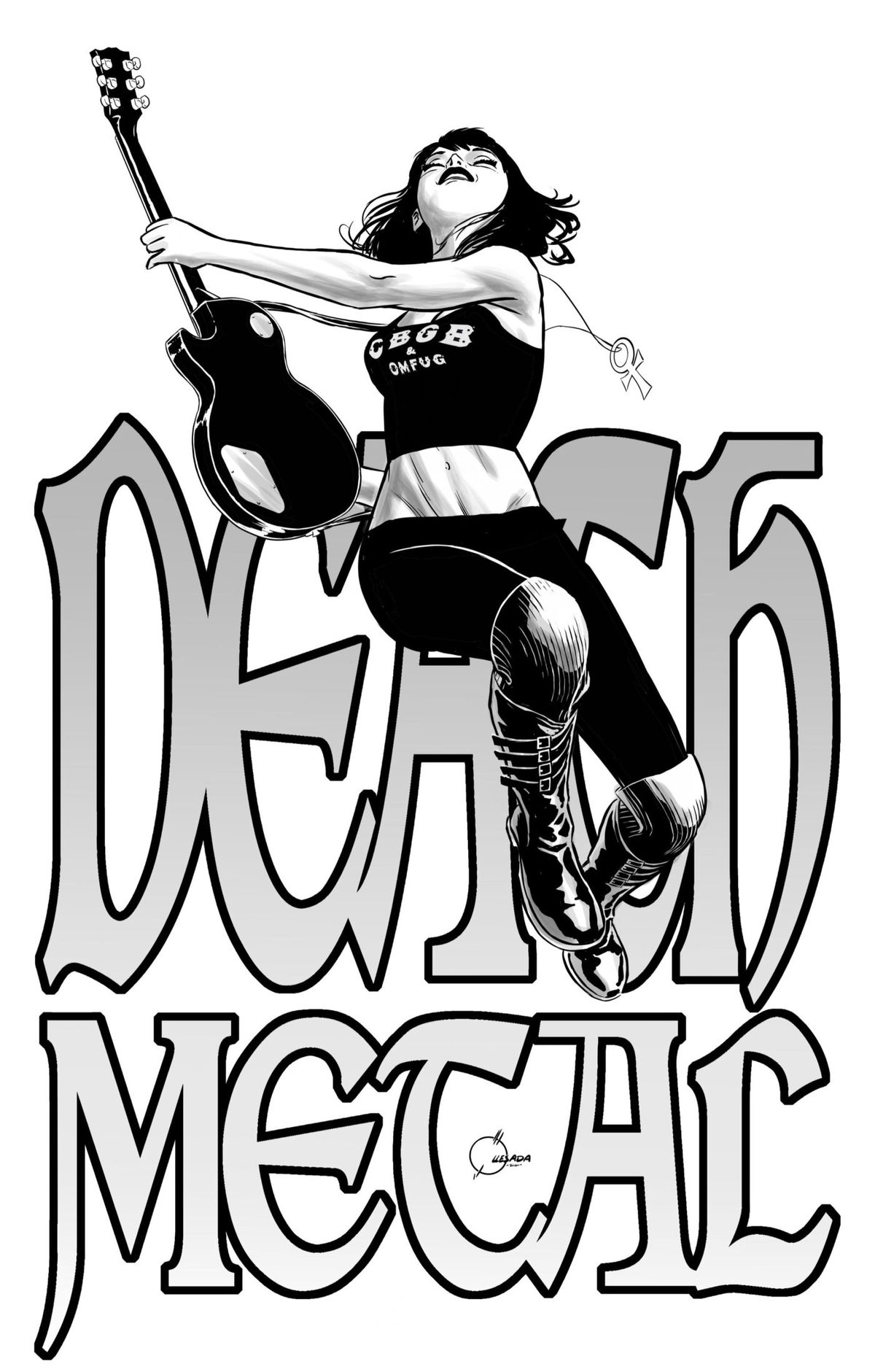 Tocca un'immagine per scorrere la galleriaNeil Gaiman, creatore del personaggio, ha manifestato il suo apprezzamento per la versione di Morte di Quesada, che l'ha trasformata in una chitarrista metal, una frecciatina al recente mega evento DC Dark Knights: Death Metal.