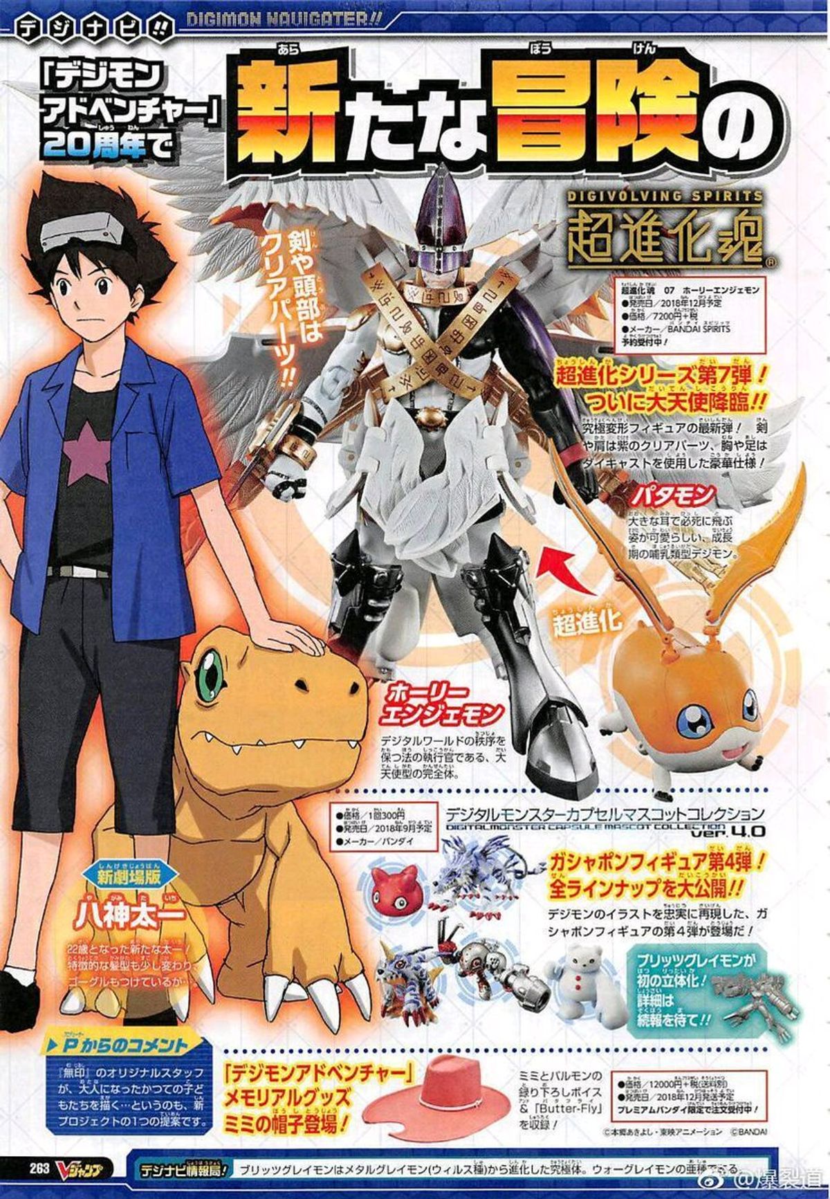 Recentemente, a quelle prime immagini se ne sono aggiunte altre più dettagliate, diffuse dalla rivista V-Jump, edita in patria da Shueisha. Come potete notare, Tai ha un look informale, con pantaloni capri neri e una camicetta blu aperta; la sua folta chioma non si è ancora arresa alla forza di gravità, ma appare più ridotta del solito; infine, continua a indossare un paio di occhiali, ma questi hanno un aspetto più hi-tech.