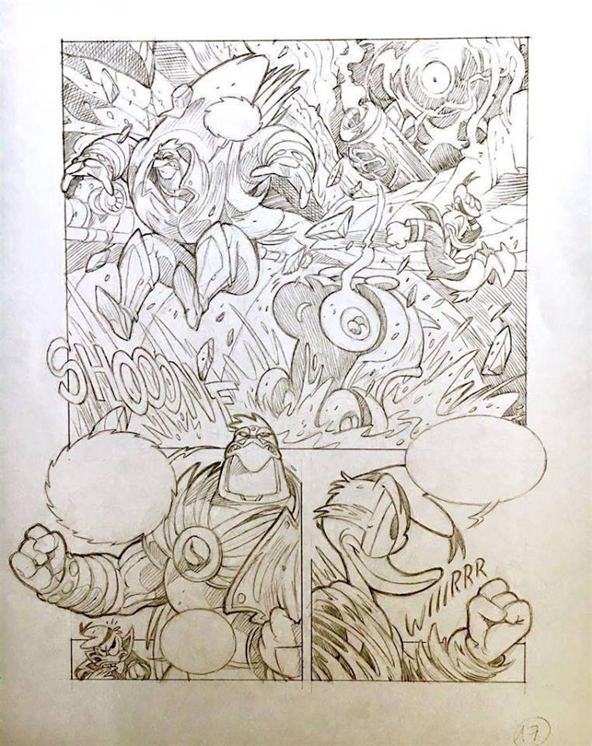 Dopo le prime tavole che vi abbiamo presentato il mese scorso, i due autori hanno pubblicato su Facebook altre pagine in versione preliminare, con i disegni a matita. Come si può già notare da queste immagini, la storia avrà un'atmosfera particolarmente kirbyana.