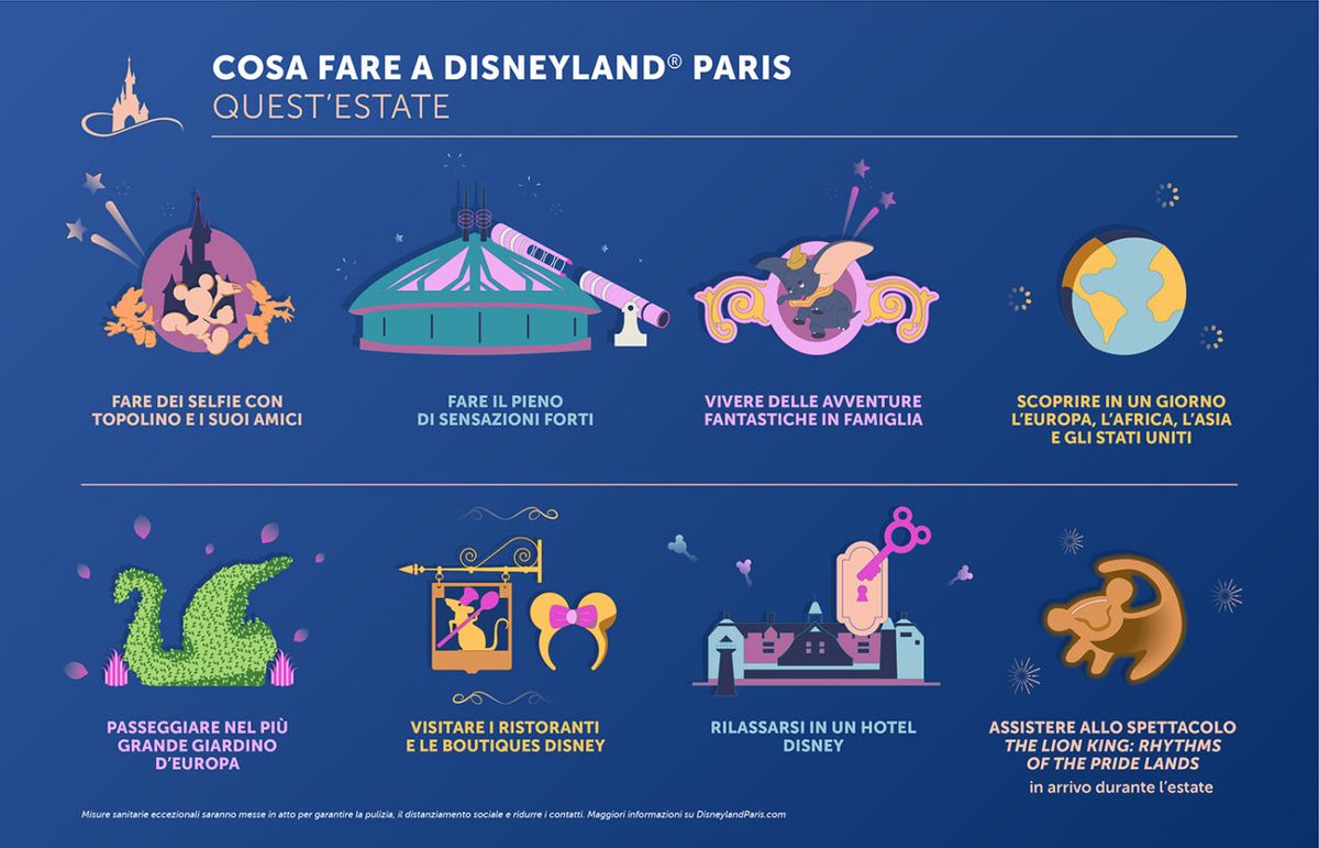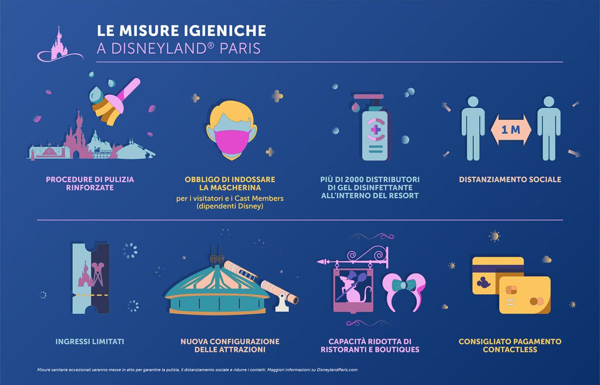 La divisione italiana della Disney ha diramato un comunicato stampa e una serie di grafiche grazie ai quali possiamo scoprire come sarà possibile tornare a Disneyland Paris e quali sono le norme anti contagio da seguire in un contesto dove l'emergenza sanitaria del nuovo Coronavirus non è ancora terminata.