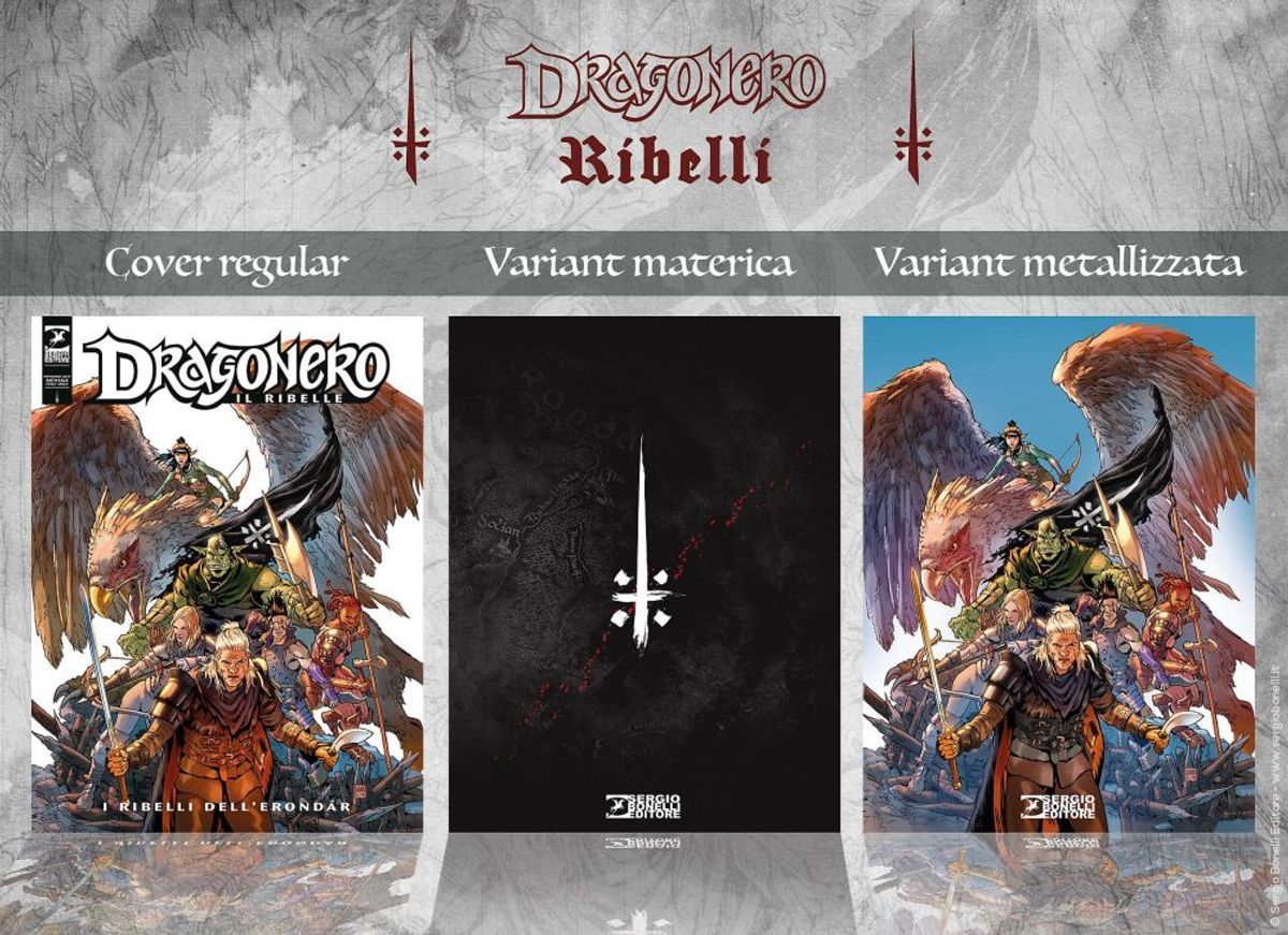 Dragonero Ribelli Box contiene tre versioni dell'uscita di novembre: oltre alla versione regolare, ce saranno due con altrettante copertine variant: una metallizzata, disponibile singolarmente al prezzo di 6,00 Euro, e l'altra con un particolare effetto materico che avvolge il simbolo dei ribelli (disponibile solo nel box).Nella scatola ci saranno poi diverse sorprese, tra cui gli avvisi di taglia emanati dall'Impero nei confronti dei ribelli più pericolosi e due giochi da tavolo calati nel mondo di Dragonero: Assalto al vallo è per due giocatori, mentre I due eserciti (stampato sul retro del coperchio della scatola) è un divertente solitario.Chi sono questi ribelli? Osservando il video promozionale qua sopra e la gallery sottostante, ai fan non sarà sfuggito che il titolo dell'albo è I ribelli dell'Erondàr, ma soprattutto l'intestazione: Dragonero - Il ribelle!