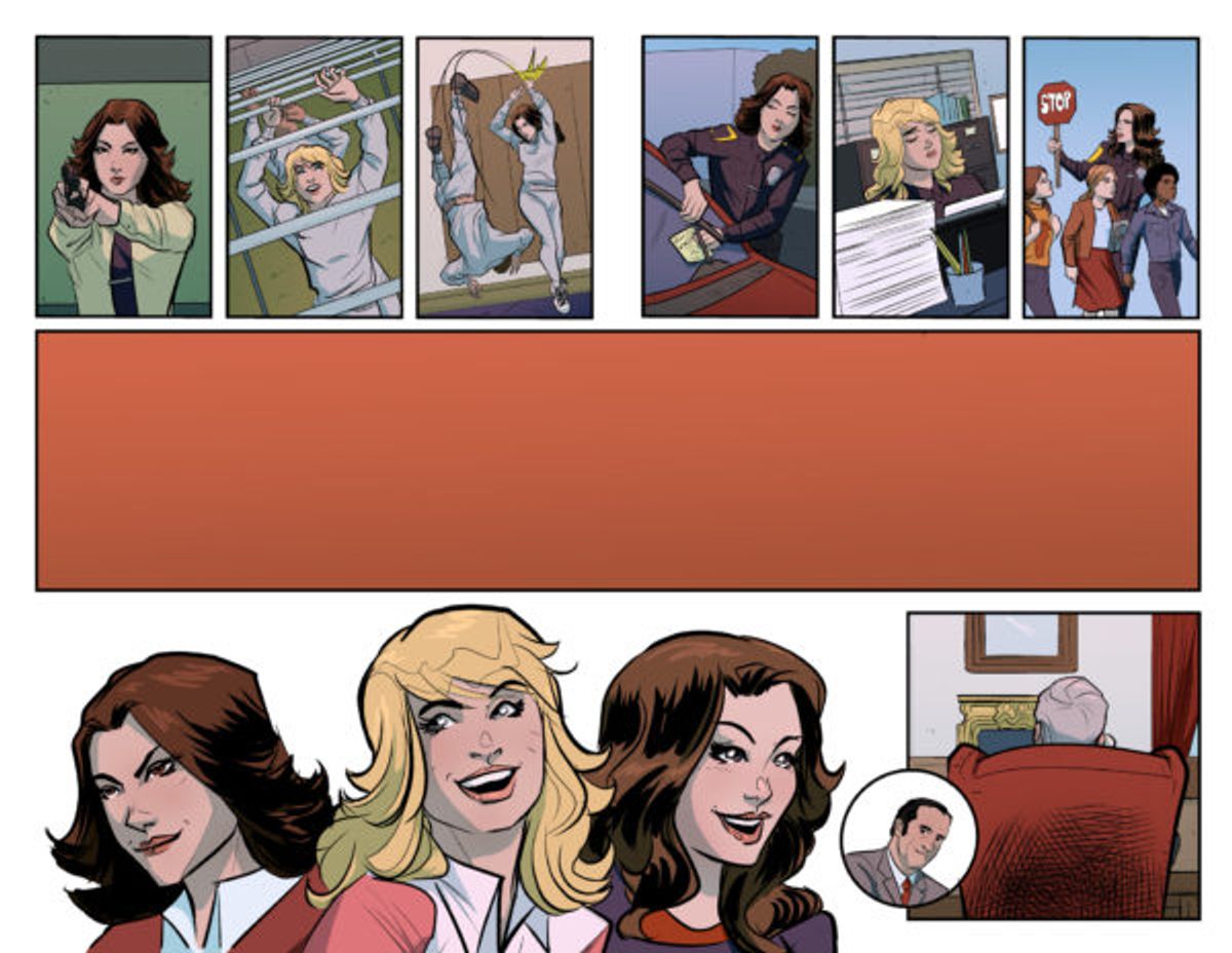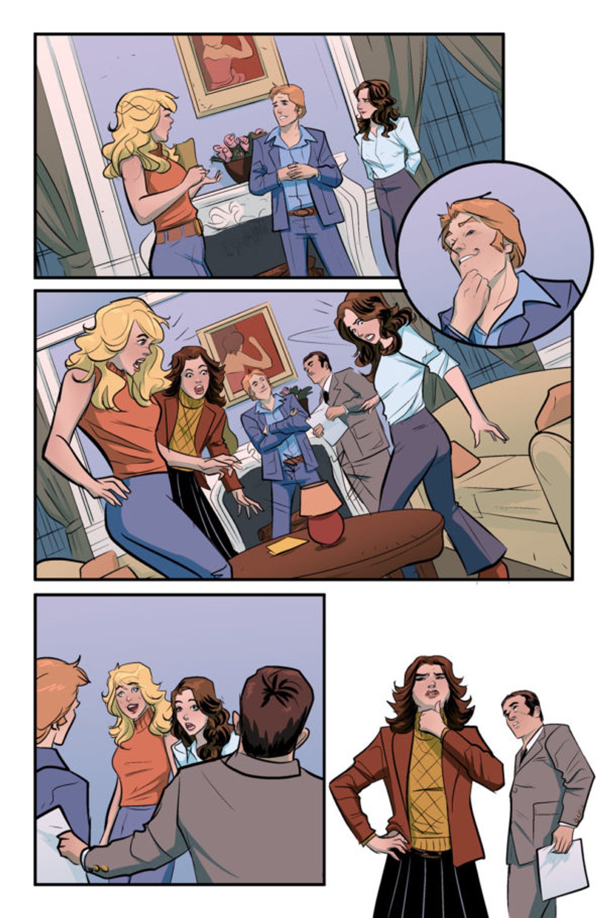 Qui sotto trovate la sinossi e alcune tavole del primo numero:Gli Angeli sono tornati! Tornate indietro nel tempo con Jill, Kelly e Sabrina fino ai ruggenti anni '70, per rivivere a 40 anni di distanza le vicende delle innovative detective pronte a prendere dei culi a calci e combattere il crimine! Mettete in mostra l'ombelico, cotonatevi i capelli e balzate in un'era di presidenti provenienti da coltivazioni di arachidi, gargantueschi scontri automobilistici e attraenti investigatrici... per un avventura intorno al mondo che era semplicemente troppo grossa ed epica per la televisione degli anni '70. Scritto dal premio Eisner John Layman e disegnato dal suo giovane compare Jon Eisma, questo è il fumetto che non potete perdervi!