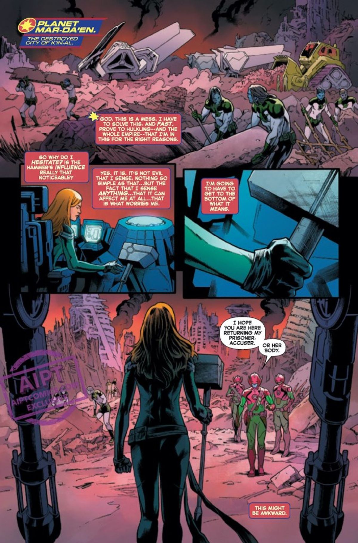 Thompson - Scrivere queste storie tie-in è stato davvero duro. Al Ewing e Dan Slott sono stati incredibilmente d'aiuto e disponibili, come sempre, ma è davvero complesso dar vita a una narrazione separata, che stia in piedi da sola, mentre la tua protagonista svolge un ruolo importante in un crossover. Carol è al centro dell'attenzione molto spesso, in Empyre, come naturale, ma questo rende un po più complicato per me trovare lo spazio per la mia trama.