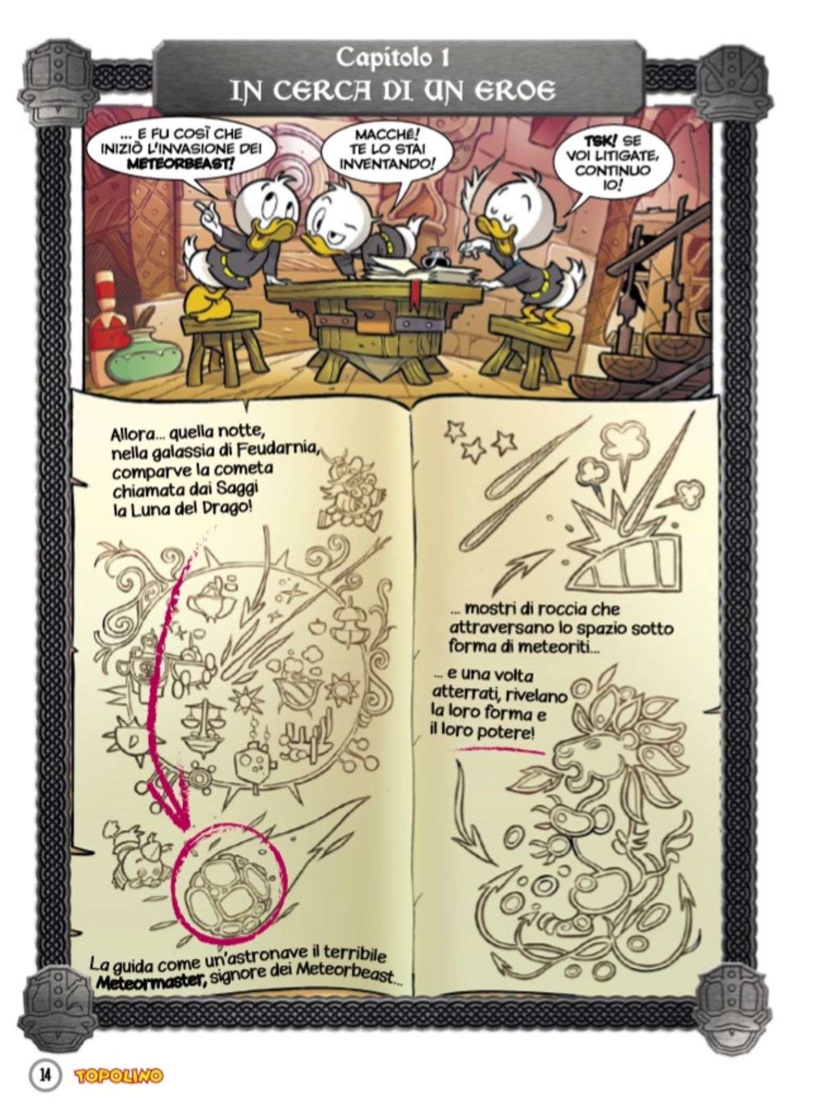 Le prime pagine dell'episodio d'esordio di Donald Quest, la nuova saga fantasy di Topolino!