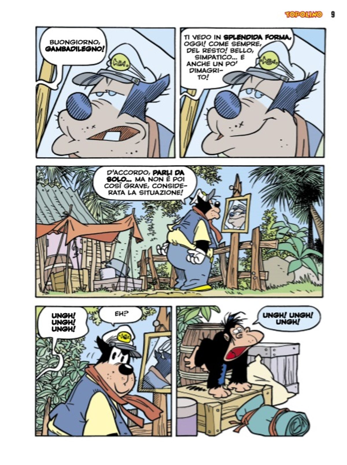 Di seguito vi mostriamo in esclusiva le prime quattro pagine del fumetto, subito dopo la sinossi e la copertina del settimanale disegnata dal maestro veneziano e colorata da Andrea Cagol.Avventura, introspezione e umorismo sono le caratteristiche di questa nuova storia che vede come protagonisti assoluti Topolino e Gambadilegno. Che cosa accadrebbe se i due personaggi in eterna lotta tra loro dovessero incontrarsi nuovamente su un’isola deserta? Nascerebbe un’amicizia o avrebbe inizio un altro scontro?