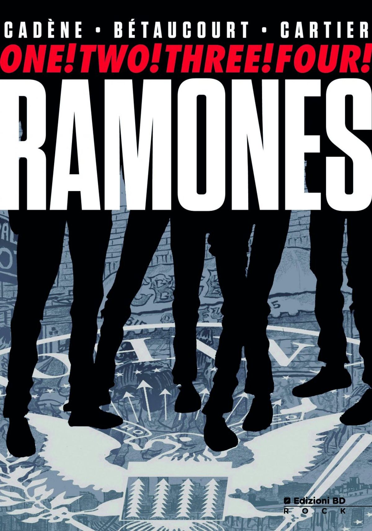 Per celebrare degnamente l'importanza di questo seminale gruppo, mercoledì 21 marzo esce in libreria e in fumetteria One! Two! Three! Four! Ramones, biographic novel realizzata da Bruno Cadène, Xavier Bétaucourt ed Éric Cartier.Di seguito trovate la sinossi, la copertina e le prime tavole del cartonato pubblicato da Edizioni BD.