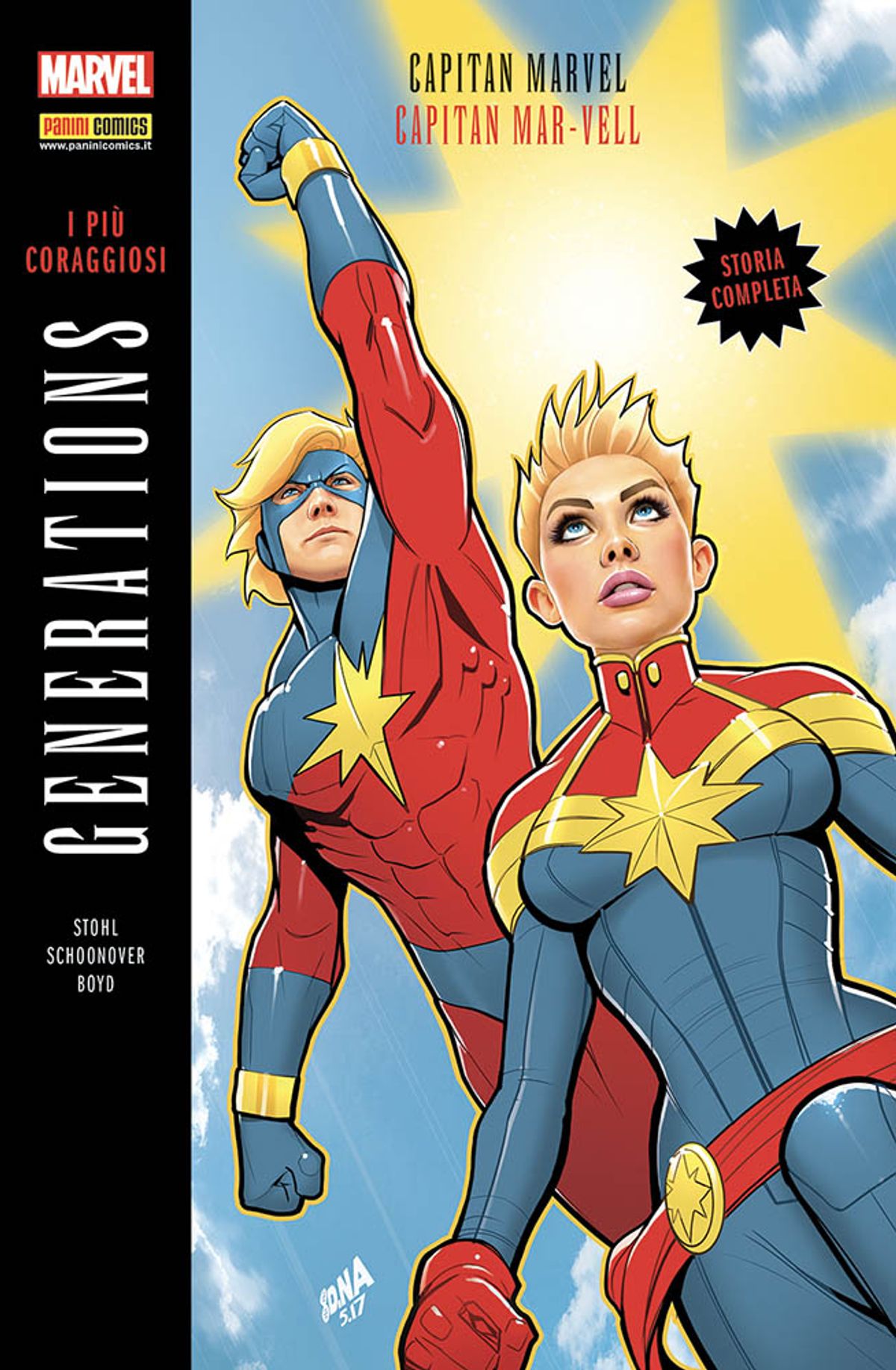 Giovedì 19 aprile esce in edicola e in fumetteria Generations: I più coraggiosi – Capitan Mavel/Capitan Mar-Vell, scritto da Margaret Stohl (Mighty Captain Marvel) e disegnato da Brent Schoonover (Howling Commandos of SHIELD).Di seguito trovate la sinossi dell’albo, la copertina di David Nakayama e le prime due tavole di Schoonover.