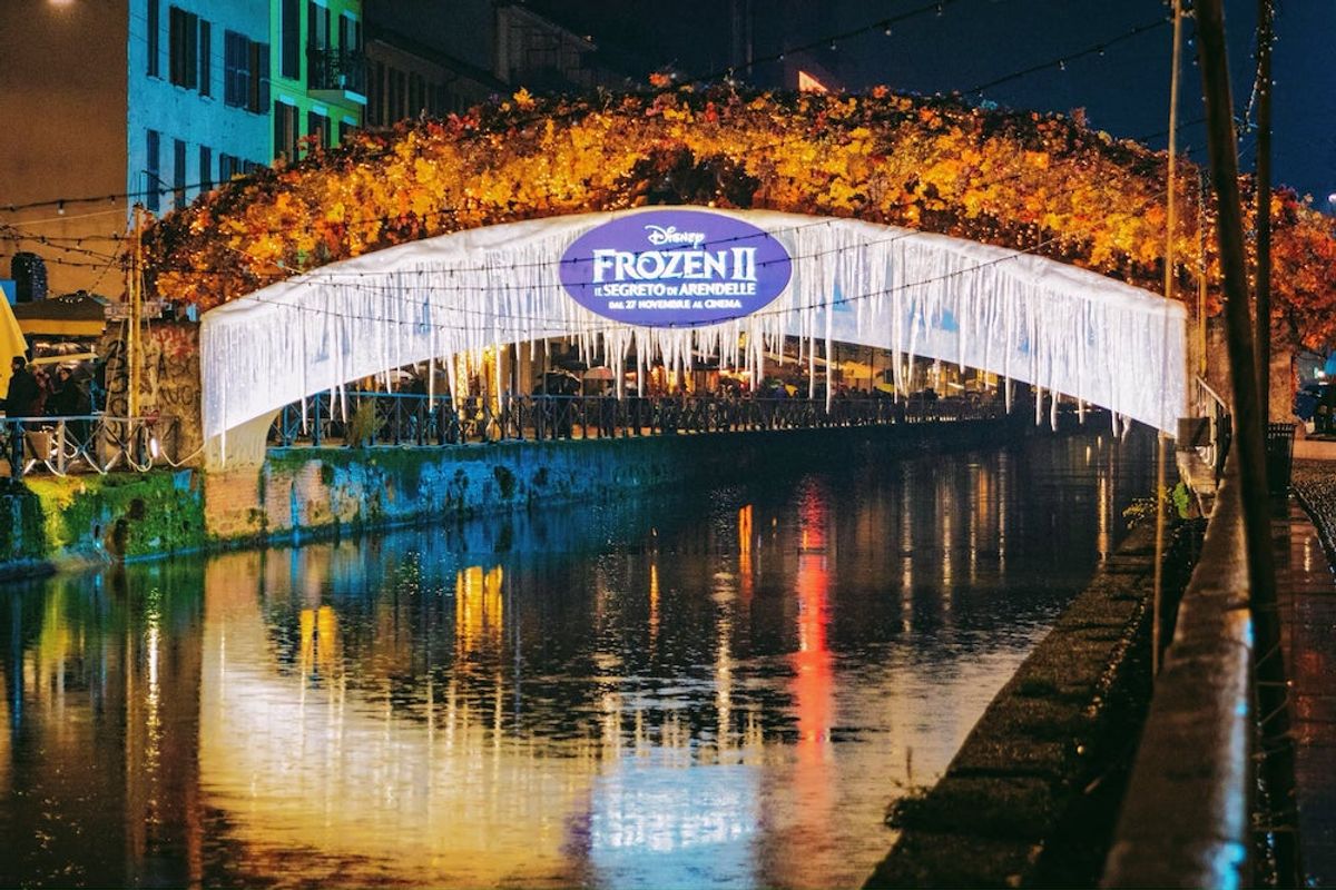 A pochi giorni dall'uscita di Frozen 2 - Il Segreto di Arendelle, la magia del film ha fatto la sua comparsa nella zona dei Navigli, a Milano, grazie a un allestimento curato dalla Disney su uno dei ponti pedonali più "trafficati" da turisti e passanti. Il Ponte Alda Merini (già ponte di via Corsico) sull'Alzaia Naviglio Grande, infatti, è stato trasformato con luminarie, neve, stalattiti, foglie e le statue di Anna ed Elsa, come potete vedere nella galleria sottostante.