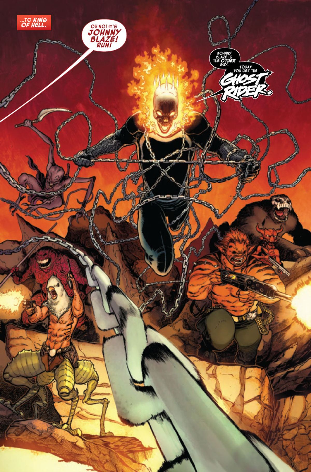 Vi ricordiamo che Johnny Blaze è recentemente divenuto il re dell'Inferno nel corso dell'evento mistico Dannazione, che ha visto Doctor Strange e un gruppo di Vendicatori affrontare Mefisto in quel di Las Vegas dopo i drammatici accadimenti di Secret Empire.