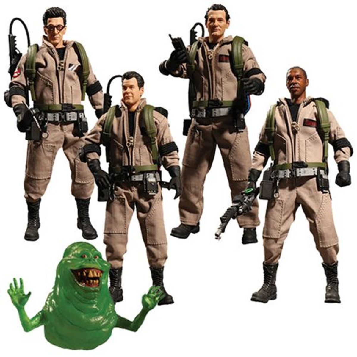Le quattro figure presenti nel box sono alte circa 17 cm e hanno 28 punti di articolazione, oltre vari accessori (tra cui due facce interscambiabili) zaini protonici con effetti luminosi, arti di ricambio e la figure di Slimer.