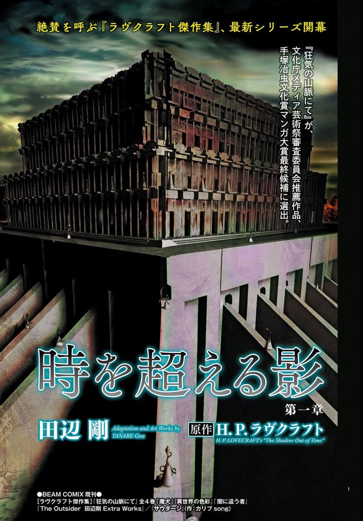 Giovedì scorso, ha invece debuttato l'adattamento del racconto L'ombra venuta dal tempo, intitolata Toki o Koeru Kage. Il manga ha esordito sul numero di maggio (uscito il 12 aprile in patria) della rivista Comic Beam, che gli ha dedicato la copertina e alcune pagine a colori.Galleria