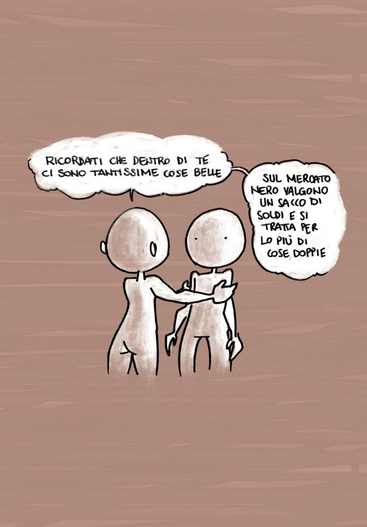 “Ho accompagnato Grillo per mari e monti,” aggiunge Gianluca Caputo, fondatore di Fumetti Crudi e responsabile digitale per Shockdom, “non perché pensavo che fosse un bravo autore ma perché era simpatico e mi faceva compagnia (e dividevamo la benzina). Poi un giorno ho scoperto che faceva anche i disegni e allora ho iniziato a portarlo alle fiere di fumetto mostrandolo come un trofeo. Alla fine mi sono anche deciso di leggere quello che scriveva e ho finalmente capito che razza di fuoriclasse avevo tra le mani e l’ho convinto a fondare, con me, un collettivo che ne esaltasse le qualità: Fumetti Crudi. Andrea è infatti uno dei fondatori del collettivo di quella che poi sarà la collana di Shockdom dei fumetti “alternativi” ma nonostante questo ci abbiamo messo due anni a raccogliere tutto il suo materiale in un volume. Sono così tanto commosso che è come se lo avessi scritto io.”Galleria