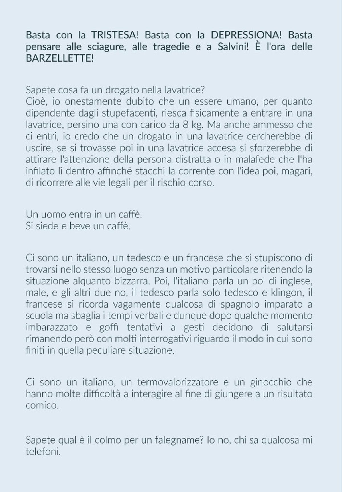 Tocca un'immagine per scorrere la galleriaAndrea Grillenzoni, che pubblica sotto lo pseudonimo di Grillo, è nato nel 1976 ed è laureato in Scienze della Comunicazione. Ha pubblicato per Shockdom in alcuni antologici sotto l’etichetta Fumetti Crudi, è comparso con testi e fumetti su più edizioni dell’agenda Comix e una volta sull’agenda Gazzenda, ha partecipato al progetto collettivo “U come Umorismo” di SlowComix e ha collaborato con il blog multiautore “Balloons | Il blog delle comic strip”. Gestisce la pagina Facebook “Gattini Assassini Sudati”.