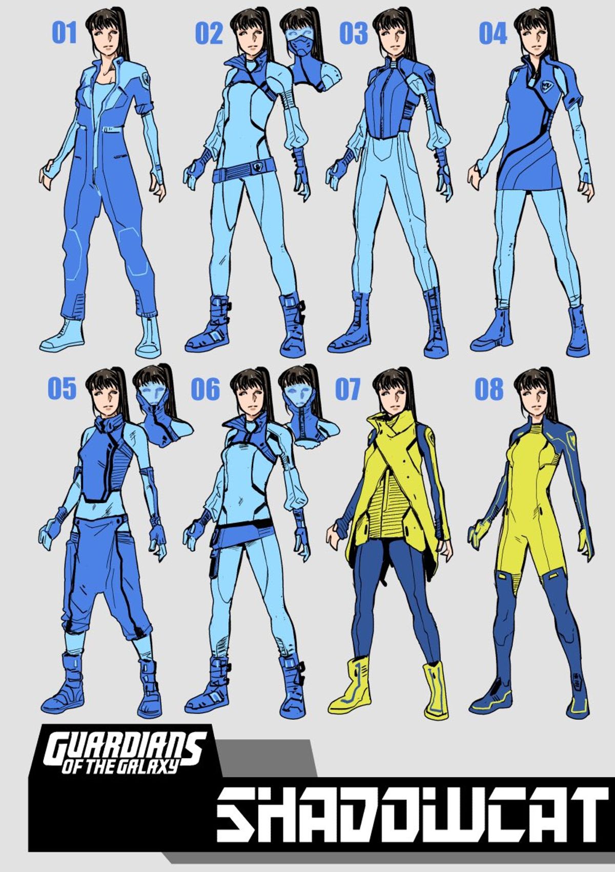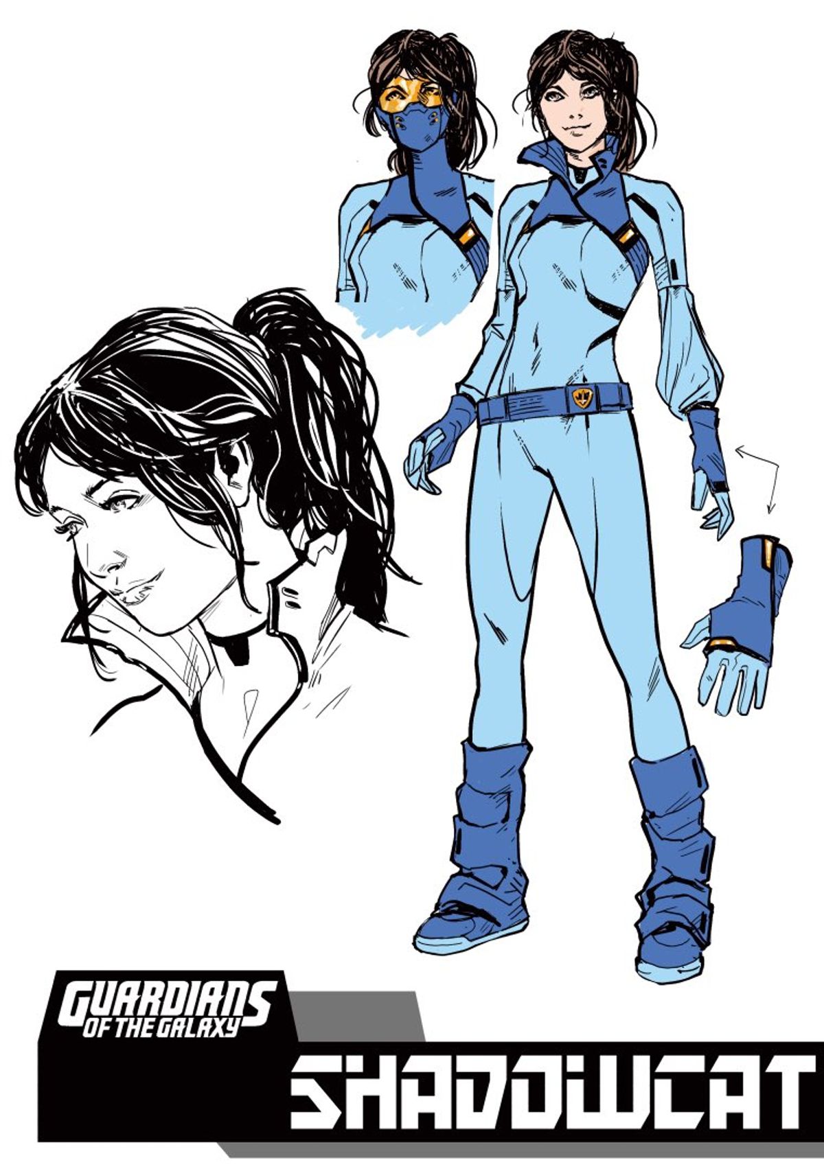 Schiti preparò dunque diversi studi per il suo costume spaziale:Schiti - Il nuovo character design di Shadowcat, quando faceva parte dei Guardiani della Galassia. Si è trattato di un breve periodo.