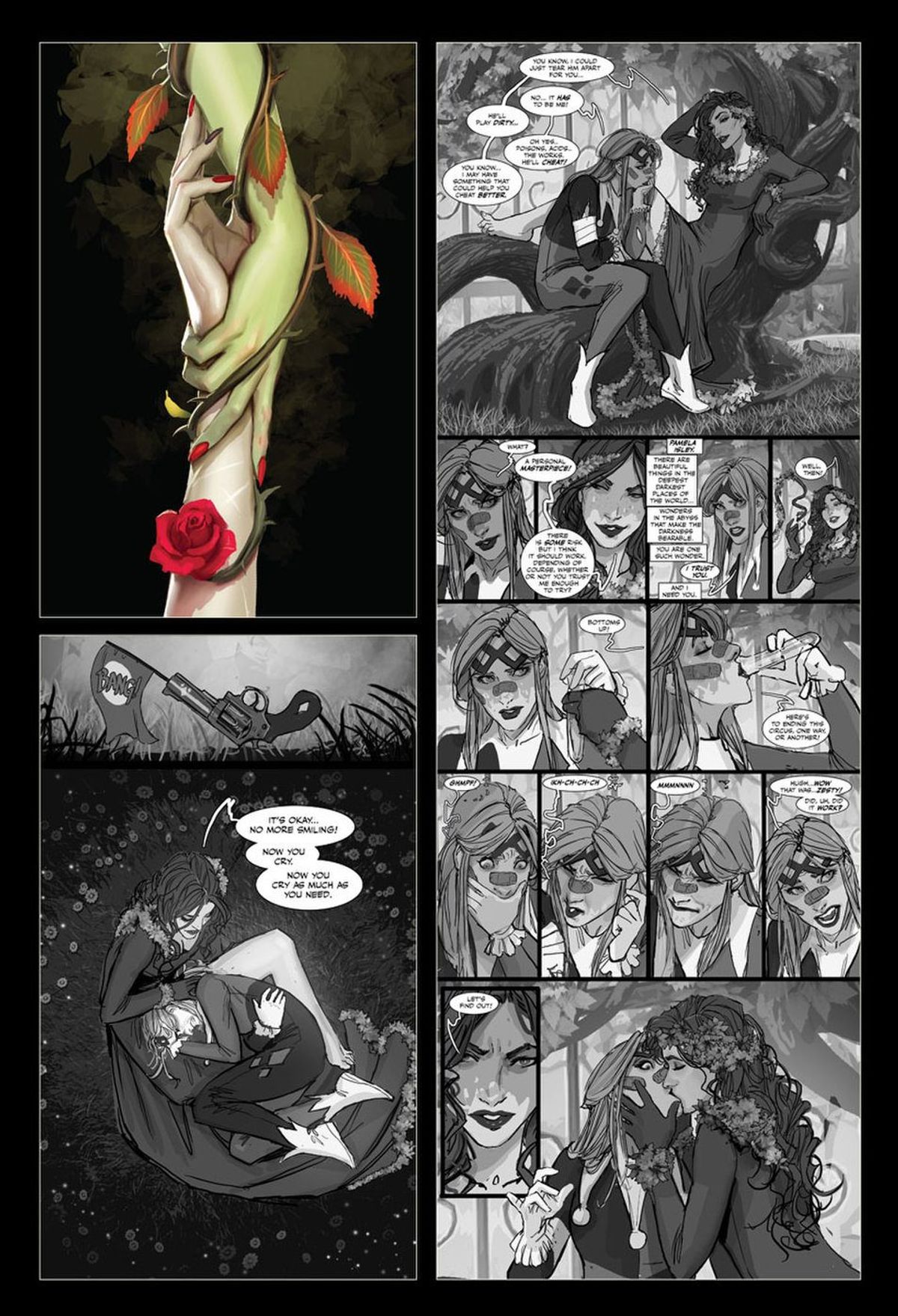 Il mio piano è di realizzare Isley prima del secondo arco narrativo di Harleen. Questo per due motivi. Innanzitutto, ho una storia molto bella da raccontare su Poison Ivy in versione Harleen. È un racconto davvero epico, qualcosa di stupendo sia a livello visivo che narrativo. Se Harleen è un thriller psicologico, questo sarà un blockbuster ricco di emozioni. Il secondo motivo è che voglio far capire alla gente quanto Poison Ivy sia uno straordinario casino.