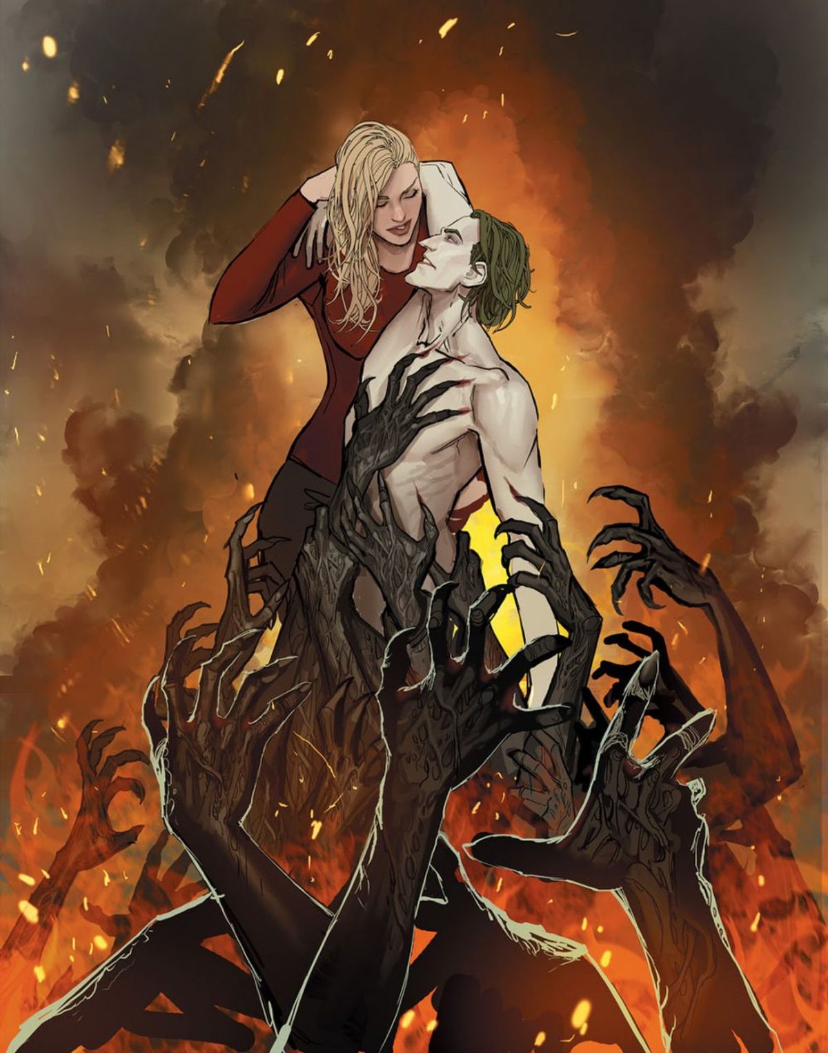 Harleen era un'idea strana fin dal principio. Una sorta di biografia di Harleen Quinzel raccontata attraverso tre grandi archi narrativi. L'ho presentata al mio editore, Andy Khouri, il giorno in cui mi ha chiesto se sarei stato interessato a presentare per l'etichetta Vertigo qualcosa di simile a Sunstone. Non qualcosa di altrettanto esplicito, intendiamoci, ma con lo stesso coinvolgimento emotivo. Non avevo in mente nulla, e d'impulso ho proposto questa idea che mi stava stuzzicando da oltre un anno. Onestamente, non pensavo si sarebbe concretizzata, ma eccoci qui.Alcuni piccoli dettagli della storia si sono evoluti nel corso degli anni, allo stesso modo in cui un dipinto si evolve aggiungendo strati di colori inaspettati, e tu realizzi che hanno contribuito a migliorarlo. I concetti principali e la direzione della storia, però, sono rimasti inalterati dalla prima presentazione.
