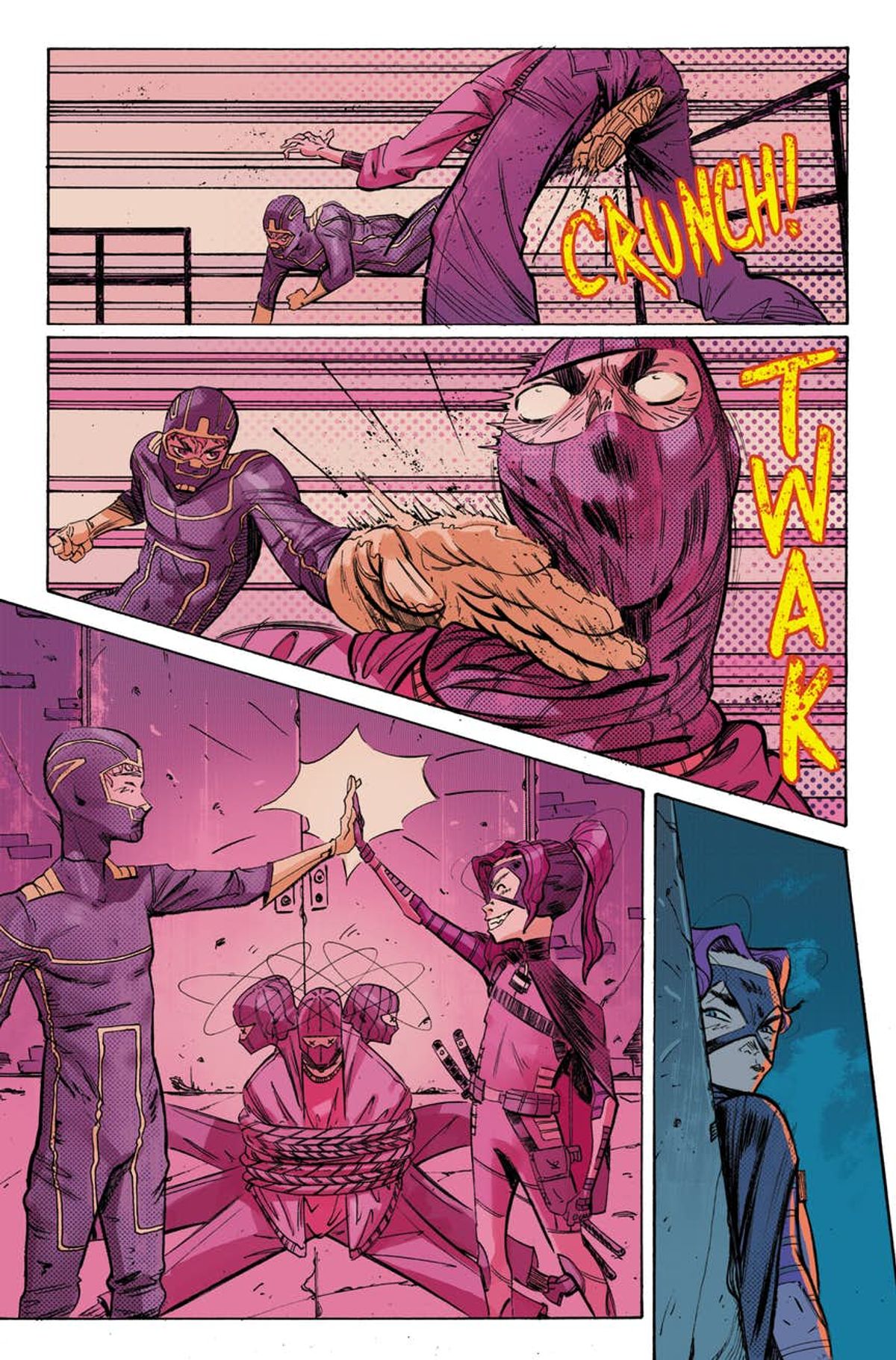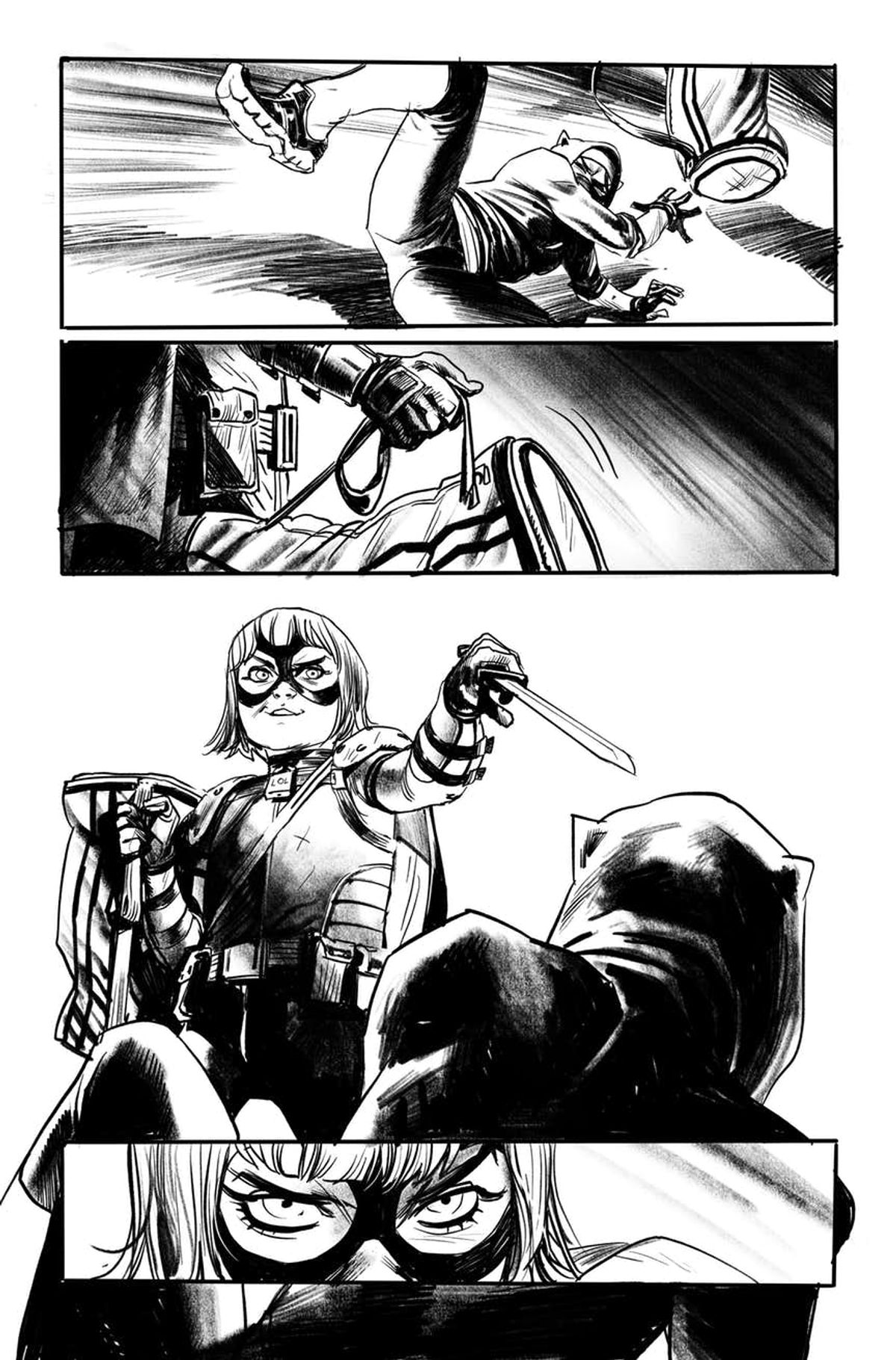Adoro giocare con le aspettative più tradizionali dei lettori, ma quel che posso dirvi è che Hit-Girl è tornata ed è in cerca di un nuovo socio. Amava Big Daddy e voleva bene a Kick-Ass. E adora i fumetti di Batman e Robin. Ora cerca qualcun altro che le guardi le spalle, ed è su questa nota che si apre Hit-Girl #1.