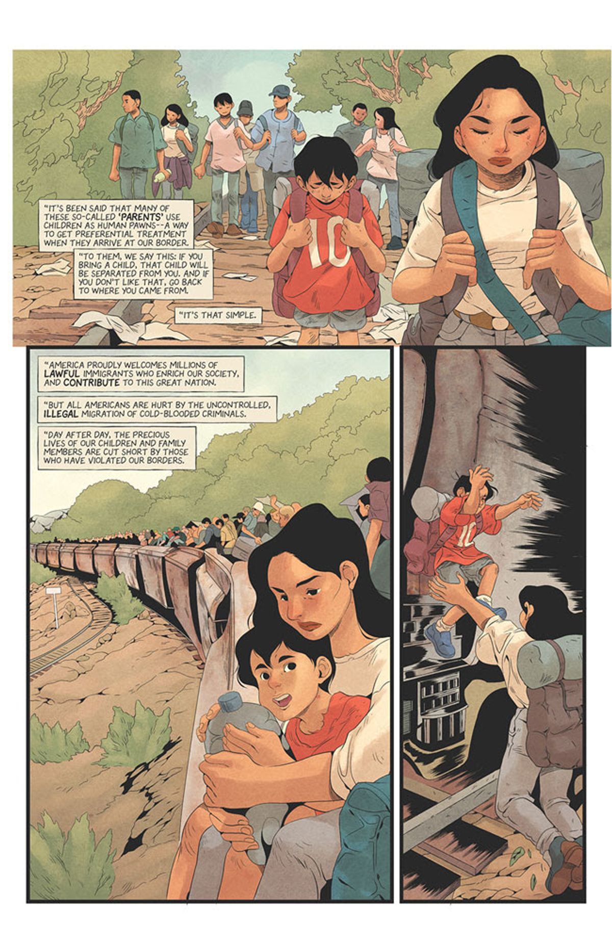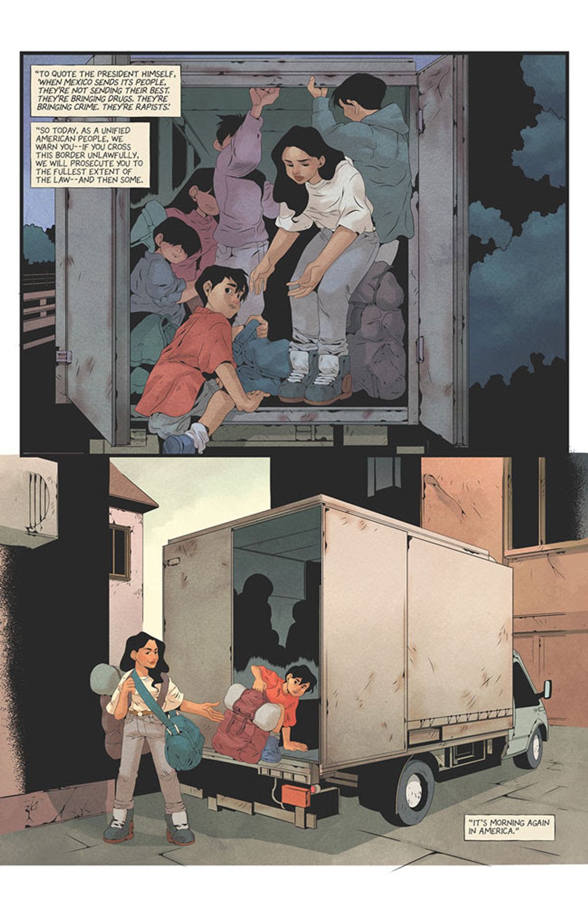 Julio Anta - Come figlio e nipote di immigrati cubani e colombiani, e ora anch'io genitore, la notizia che il governo ha separato delle famiglie mi ha spezzato il cuore e mi ha riempito di rabbia. Home è un tentativo di incanalare quei sentimenti complicati, cercando di capire cosa significhi essere americano attraverso una storia con personaggi latino-americani dotati di poteri che affrontano la crudeltà delle nostre moderne leggi sull'immigrazione.