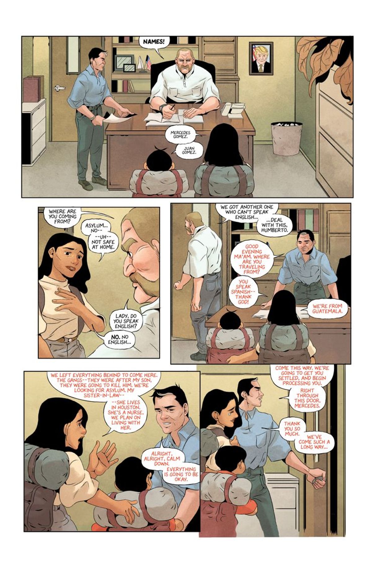 Julio Anta - Il cuore di questo fumetto è una storia sulla migrazione, la sopravvivenza e il contrasto tra le promesse dell'America e i tanti modi in cui questa nazione ha costantemente negato l'umanità delle persone latino-americane e degli immigrati. È quello che mostrano queste prime pagine, la promessa di leggi sull'accoglienza contro la crudele realtà di un sistema di immigrazione soggetto ai capricci di ogni Presidente.