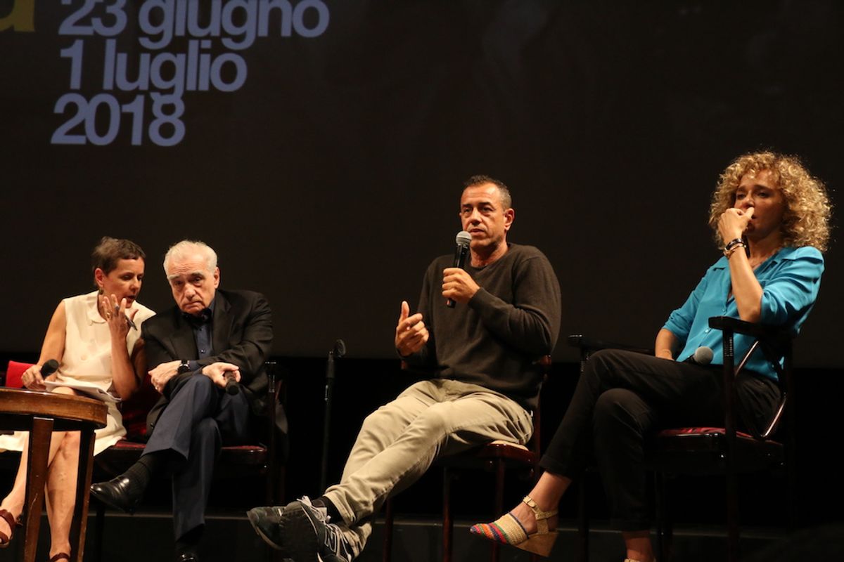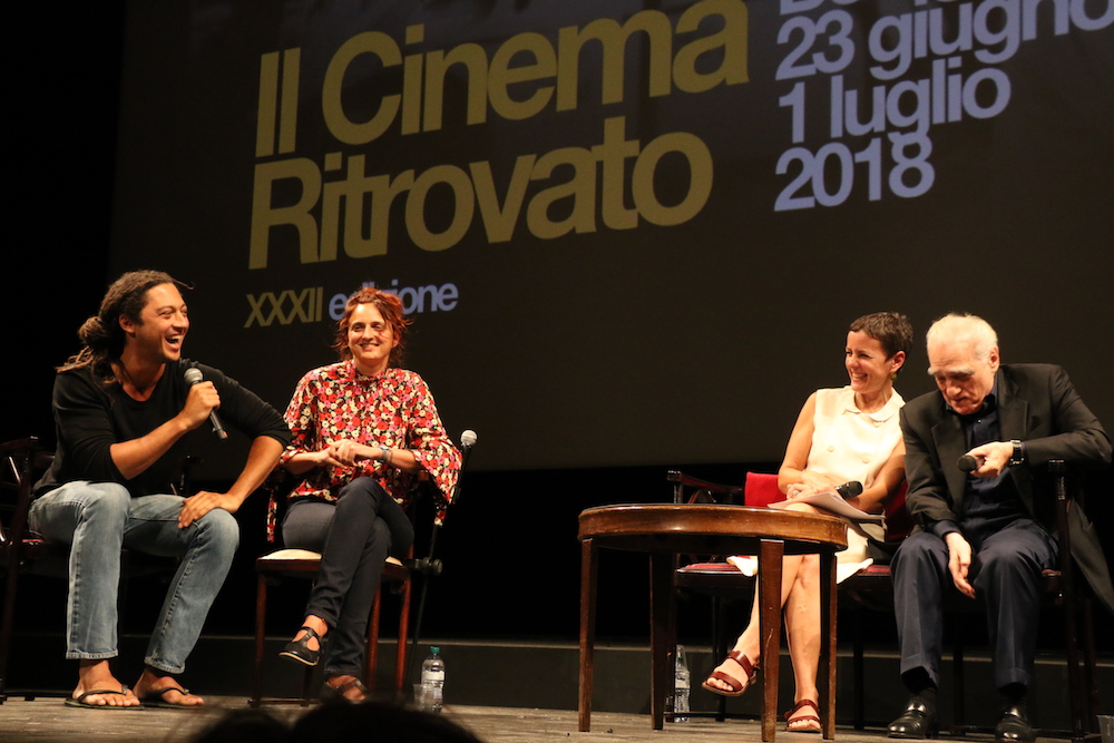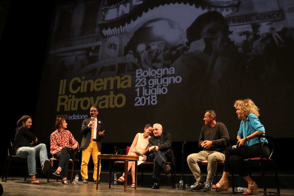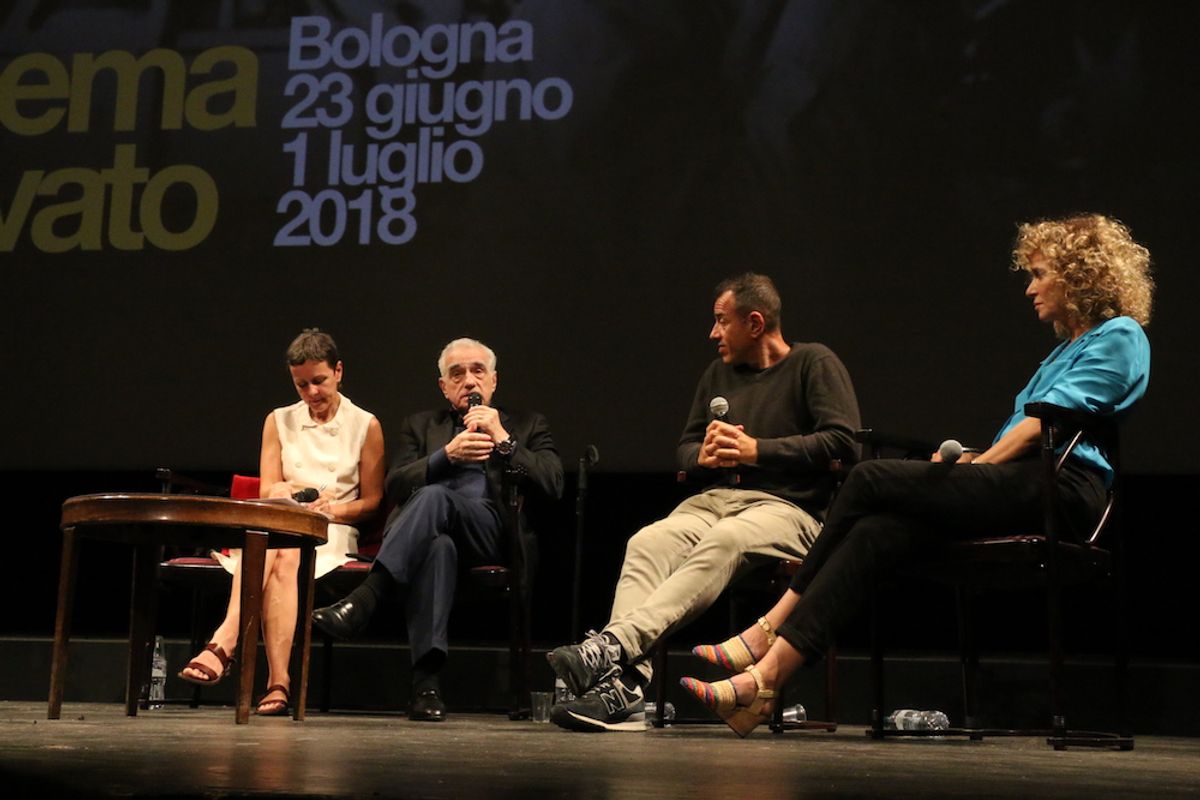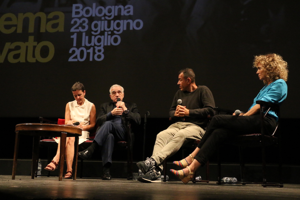 Animata da quattro registi italiani di grande talento, Jonas Carpignano, Alice Rohrwacher, Matteo Garrone e Valeria Golino, la conversazione con Martin Scorsese è stata applaudita ed apprezzata con passione da tutto il pubblico presente, in un Teatro Comunale praticamente gremito. Introducendo gli ospiti, il Direttore della Cineteca di Bologna, Gian Luca Farinelli, ha ricordato come sia importante la presenza di Scorsese al “Cinema Ritrovato” perché primo cineasta ad affermare l’importanza del cinema del passato e ad impegnarsi concretamente nel restauro del patrimonio cinematografico con la sua Film Foundation.