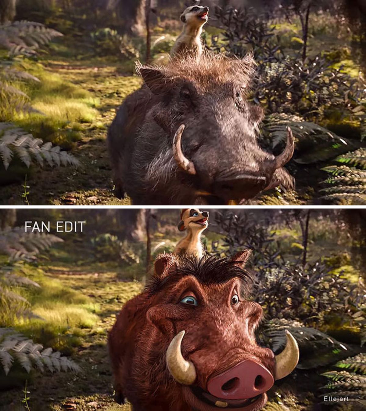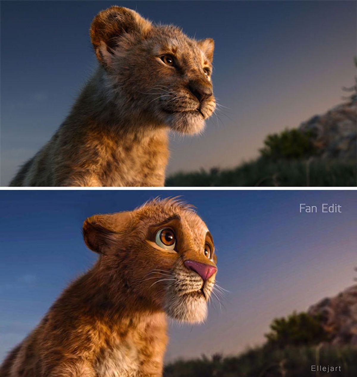 Delle immagini mashup enfatizzano un look più cartoonesco per i protagonisti del nuovo film in live-action di Il Re Leone