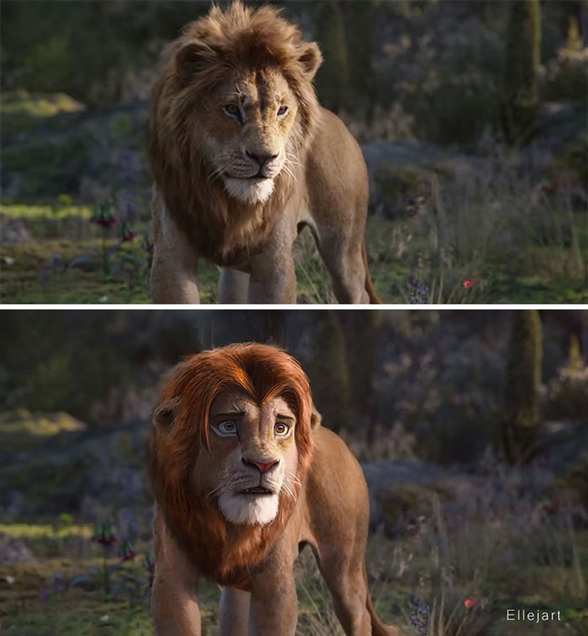 Il Re Leone: i protagonisti del film con un look più cartoonesco in alcune immagini mashup