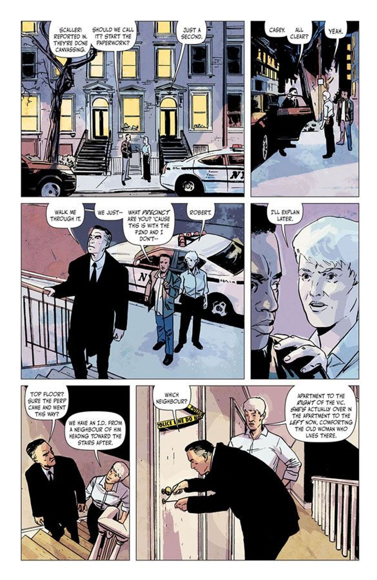 Chip Zdarsky - Adoro la sensazione di soddisfazione che si prova seguendo una serie procedurale, perciò non potevo lasciarmi sfuggire l'occasione di fare qualcosa di simile sotto forma di fumetto, dando contemporaneamente forma a una grandiosa storia su una fittizia New York sotterranea. E Jacob è il disegnatore perfetto per questo fumetto! Le sue opere sono grintose e ricche di sentimenti, infonderà tutto questo nel nuovo fumetto.