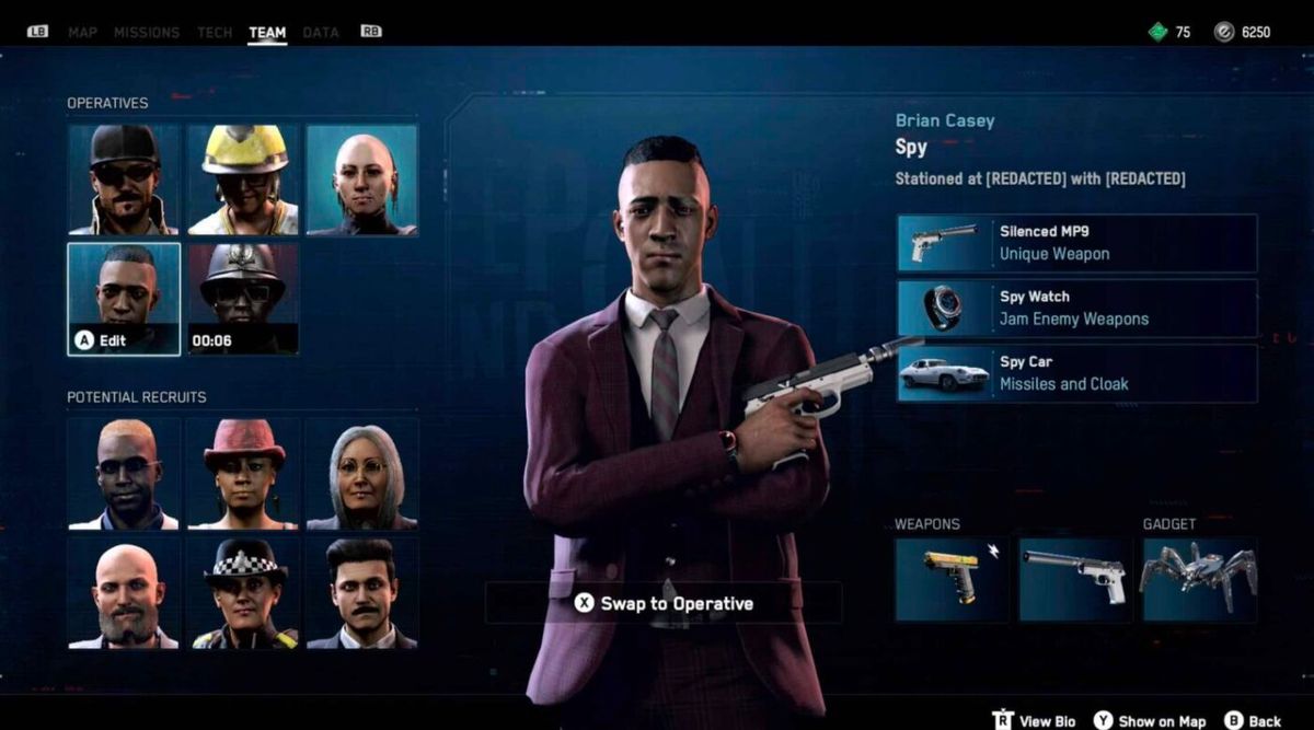 La spia, invece, avrà in dotazione una speciale pistola silenziata, un oggetto per interferire con le armi nemiche e una macchina dotata di missili. Tutto quello che si può volere, quando si è un agente al servizio di Sua Maestà.A chiudere il trittico di personaggi ci pensa l'hooligan, che potrà schierare in strada i suoi amici per creare delle vere e proprie risse. Una sua ulteriore abilità, perfettamente coerente con la figura del tifoso violento, è quella di ubriacarsi per incassare meno danni durante gli scontri.