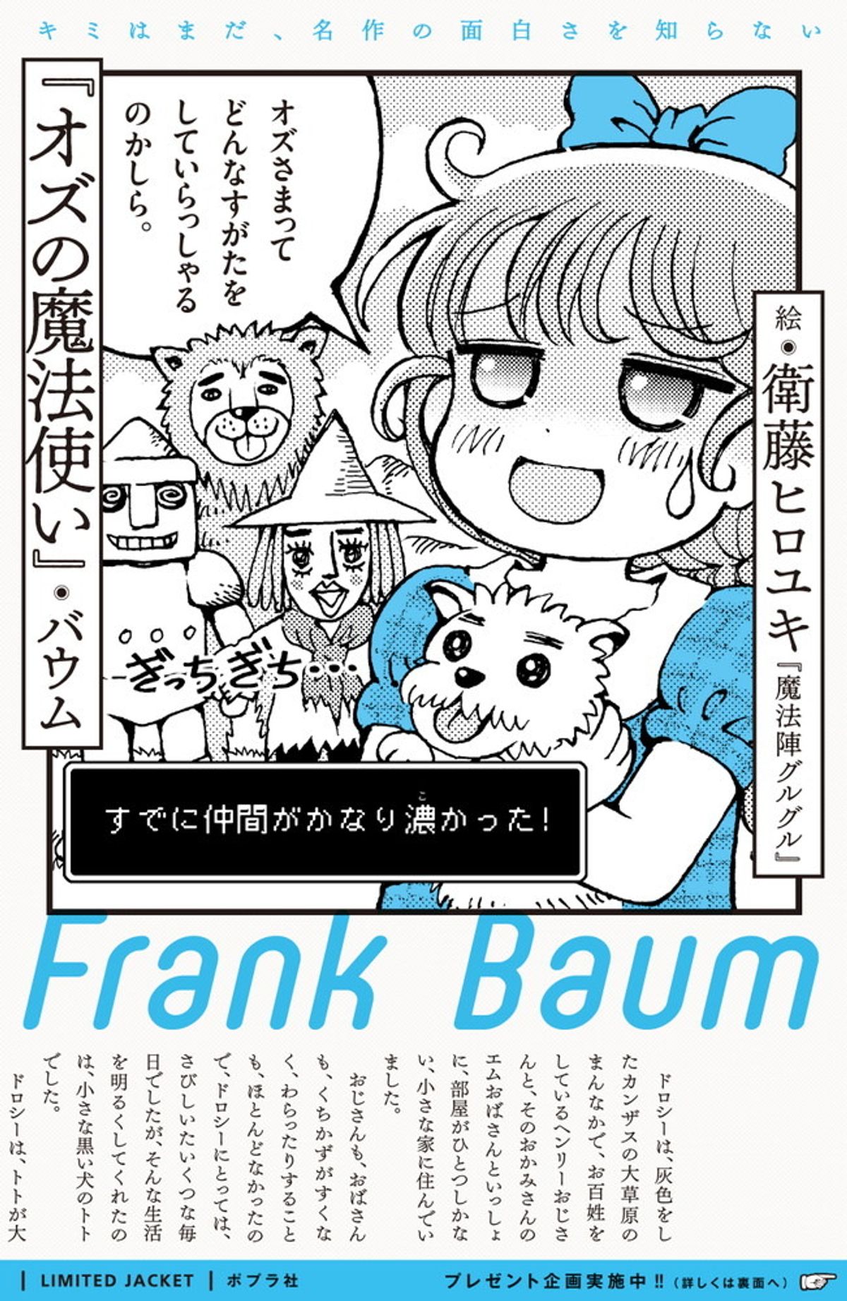 Haruko Ichikawa (Land of the Lustrous) ha invece creato la copertina di Una notte sul treno della Via Lattea, di Kenji Miyazawa; e Hiroyuki Eto (Guru Guru - Il Girotondo della Magia) ha disegnato quella di Il meraviglioso mago di Oz, il celebre romanzo per ragazzi di L. Frank Baum.Sumito Oowara (Eizoken ni wa Te o Dasuna!) ha firmato l’illustrazione di copertina di Due anni di vacanze, di Jules Verne; e Sukeracko (Bon no kuni – Il festival delle lanterne, Oki inu) quella di Chumon no oi ryouriten, scritto da Kenji Miyazawa.