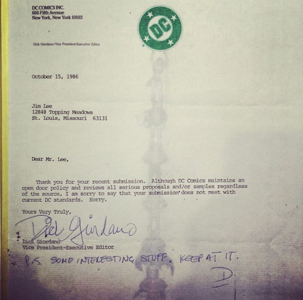 Jim Lee mostra le lettere di rifiuto ricevute da Marvel e DC Comics