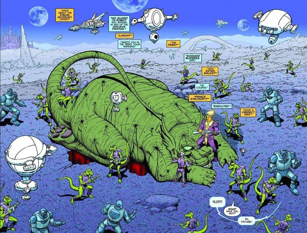Nel frattempo, godiamoci le ultime dichiarazioni di Starlin su Dreadstar Returns:Starlin - Sono passati venticinque anni dalla mia ultima storia su di lui. I personaggi hanno intrapreso cammini separati e si trovano in contesti molto diversi. Dreadstar è in quello più strano in assoluto. Willow è ancora alla guida della galassia empirica, che ora ha preso il nome di Willow Consortium. Una minaccia interdimensionale sta lentamente divorando la capitale, Altarix, e potrebbe non fermarsi alla città, coinvolgendo il mondo intero. Forse persino l'universo. Quindi Dreadstar è richiamato dal suo ritiro per aiutare a dirimere la situazione.
