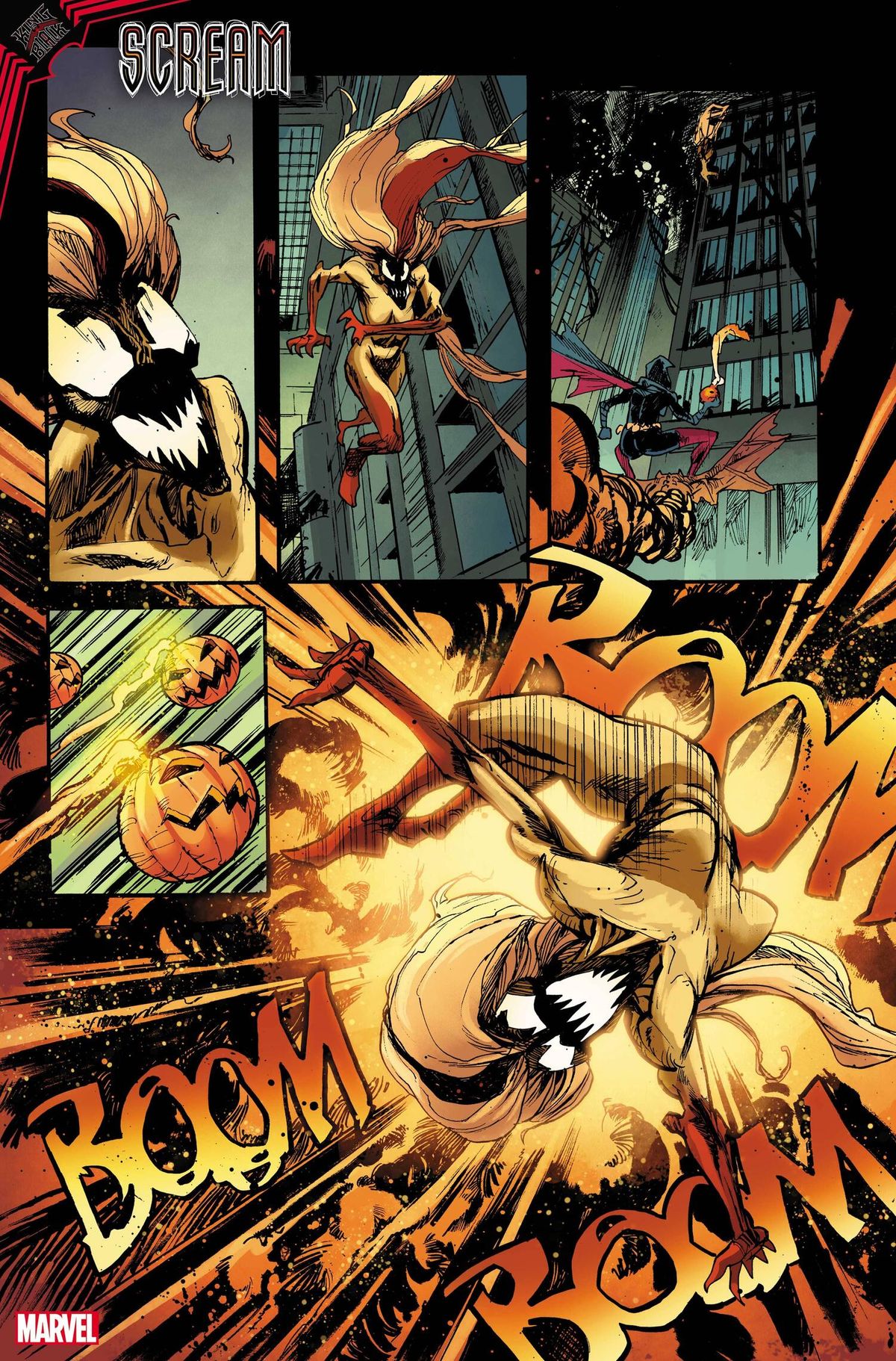 La Terra è sotto assedio, preda delle scorribande di Knull, il Dio dei Simbionti, e del suo esercito di draghi. Lo scorso dicembre, ha avuto inizio negli Stati Uniti King in Black, nuovo capitolo della saga di Venom ideato dallo sceneggiatore Donny Cates (Thor) e dal disegnatore Ryan Stegman (Spider-Man: Rinnovare i voti). Nel corso degli ultimi mesi, abbiamo avuto modo di leggere le diverse storie che stanno accompagnando la miniserie portante; tra quelle che, invece, leggeremo nelle prossime settimane troveremo lo speciale dedicato a Scream.Il one-shot uscirà il 24 marzo negli States ed è scritto da Clay McLeod Chapman – già al lavoro sul personaggio sulle pagine di Scream: Curse of Carnage – per i disegni di Garry Brown. L’albo avrà una copertina regular realizzata da Inhyuk Lee, e una variant di R.B. Silva. In fondo all’articolo, trovate una gallery in cui sono state raccolte le prime tavole in anteprima di King in Black: Scream #1.In questa nuova avventura, Andi Benton affronterà il Signore dell’Abisso: già in passato, la Nostra ha incrociato il suo cammino con i simbionti; adesso, però, deve vedersela con Knull e sembra che sia l’unica in possesso dell’arma che potrebbe scalfirne l’armatura.