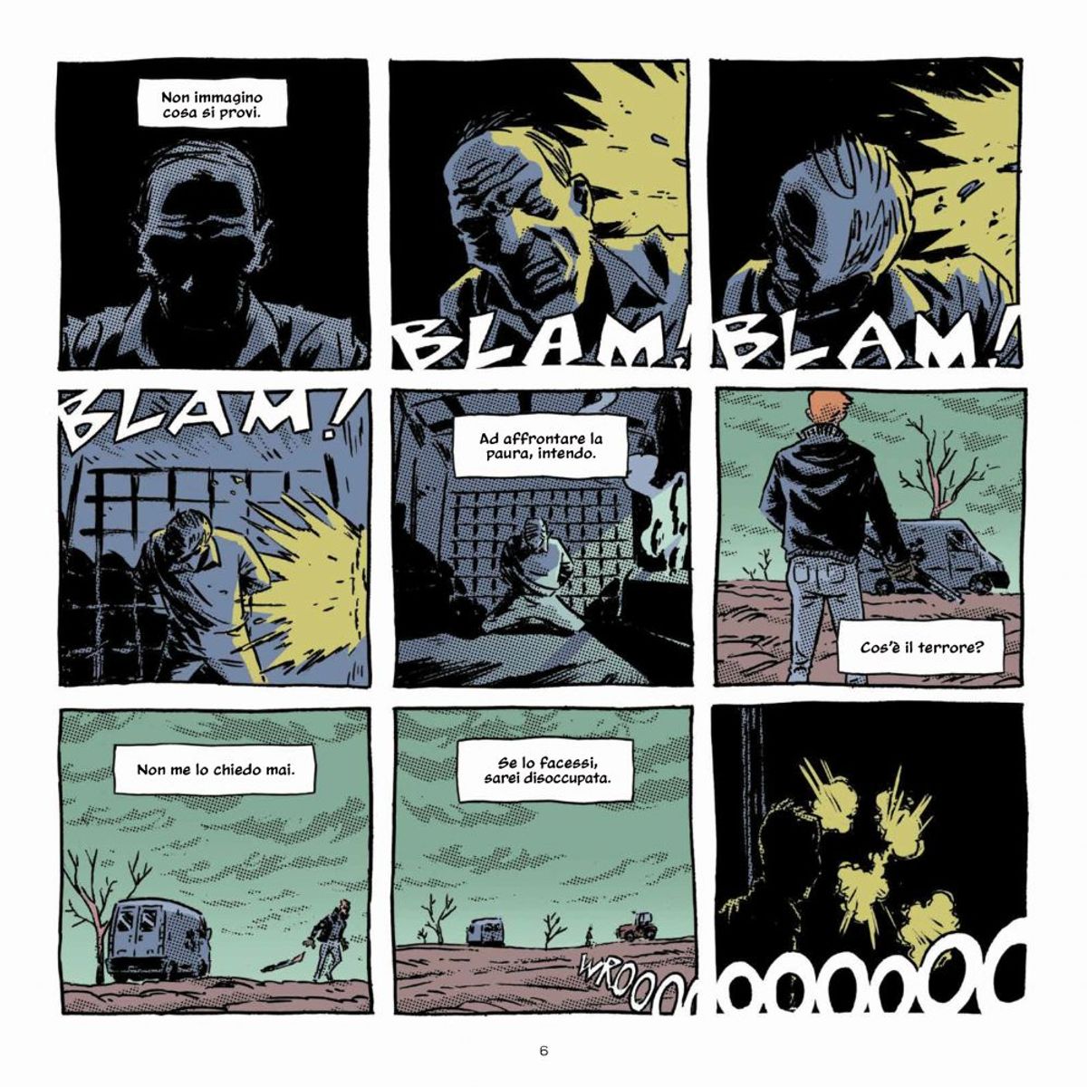 LA LUPA uscirà a maggio in un elegante volume cartonato quadrato, che riprende la griglia a nove vignette quadrate della tavola di Palloni. Un formato inusuale, per un fumetto unico nel suo genere.Lorenzo Palloni, è uno dei fondatori dell'Associazione Culturale MAMMAIUTO, è autore di MOONED (Shockdom) e SCARY ALLAN CROW insieme a Dj Aladyn (Edizioni Inkiostro, 2017) ed è il disegnatore di UN LUNGO CAMMINO e de IL CUGINO per il mercato francese ha pubblicato i libri THE CORNER, con Andrea Settimo, L'ÎLE (Editions Sarbacane, 2016), ESATTO (Mammaiuto, 2016; Editions Sarbacane, 2017); le raccolte di storie brevi FALENE e TEMPO DA LUPI(Mammaiuto, 2018) e 365 con Paolo Castaldi (Shockdom, 2018). Ha inoltre partecipato agli antologici "Un ragazzo parte per un viaggio, ferisce qualcuno, non torna più a casa" (Mammaiuto, 2015) e "Escamotage" (Mammaiuto, 2017). Per l’European Research Council crea il webcomic ESTRELLA (ERCcOMICS, 2017), e con il gruppo Mammaiuto Lab scrive TOPO GINO E IL PESCIOLINO (Mammaiuto, 2018) e disegna GREEN GIRL (Comicon Edizioni, 2018).