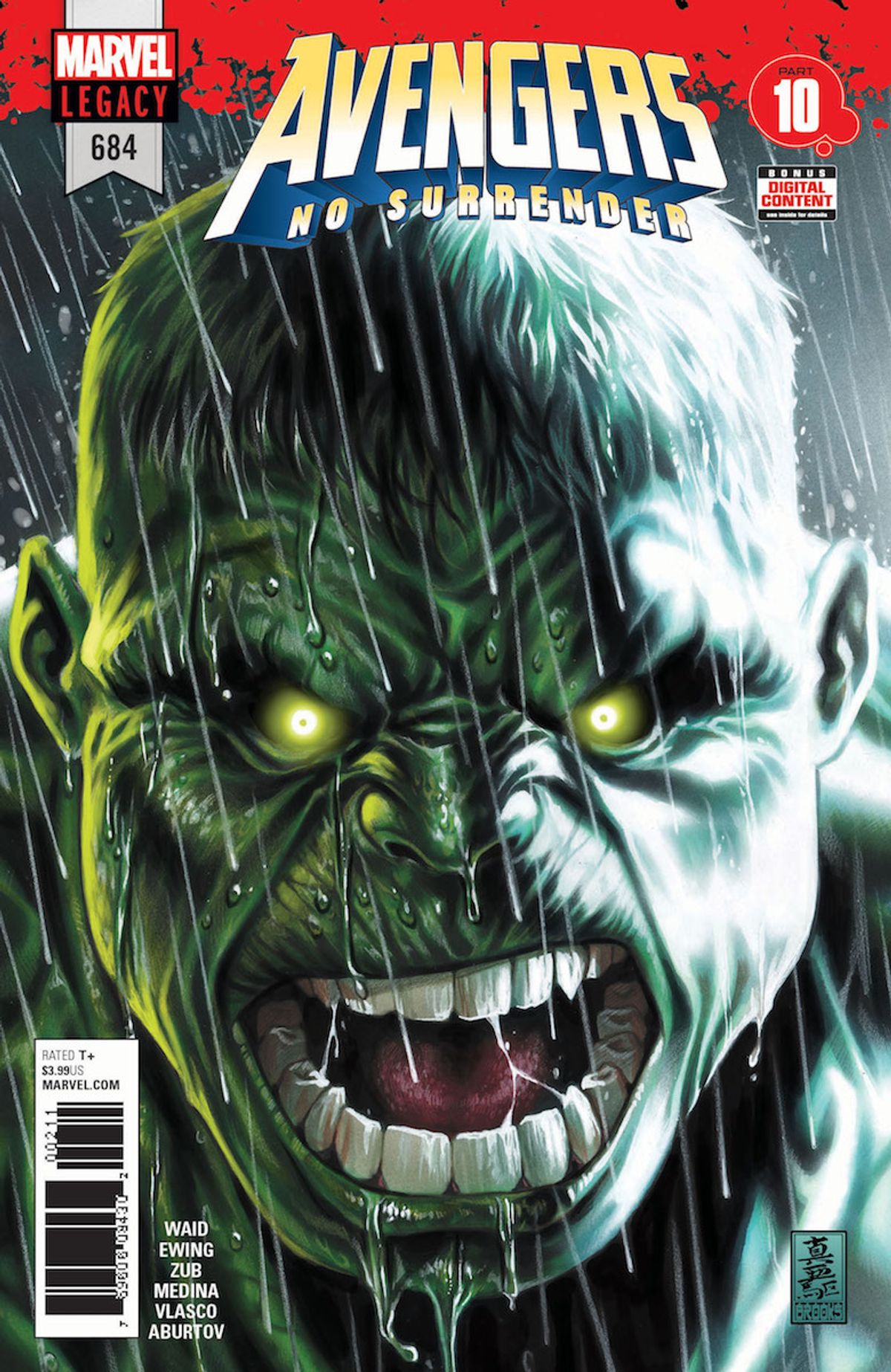 Come succosa anticipazione del terzo mese dell'evento, la Casa delle Idee ha diffuso le copertine delle uscite marzoline (Avengers #683/686) illustrate da Mark Brooks, che mostrano alcuni dei protagonisti della saga, in particolare un redivivo Hulk più furioso che mai (perito lo scorso anno sulle pagine di Civil War II)! La Casa delle Idee ha inoltre diffuso nuove variant cover componibili firmate da Nick Bradshaw.Si sa ancora pochissimo della trama di No Surrender, che vedrà gli Eroi Più Potenti della Terra affrontare un nuovo e potentissimo nemico, in grado di rubare l'intero pianeta.