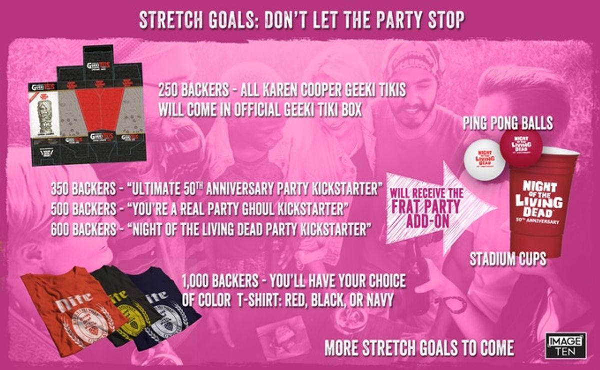 Per onorare tale traguardo su Kickstarter è partita una campagna di raccolta fonti per realizzare dei gadget da party ispirati proprio al film di Romero che comprende qualsiasi tipo di oggetto a tema, da bicchieri personalizzati, a giochi di carte e molto altro ancora.