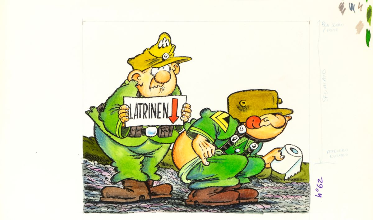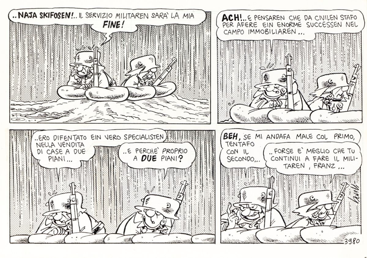 Il suo successo è iniziato nel 1968 proprio a Lucca, dove ha presentato al mondo i suoi buffi soldatini tedeschi, e a Lucca si terrà quest’anno la prima asta di tavole originali dedicata interamente a lui: Urania Casa d’Aste batterà ben 62 pezzi che rappresentano il meglio della sua produzione.