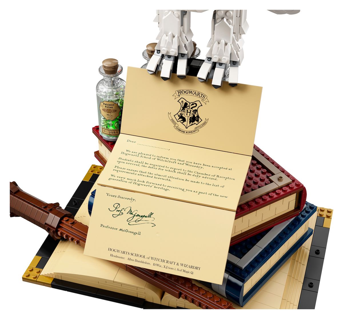 Lo splendido set è ricco di dettagli e segue le avventure di Harry Potter™ e dei suoi amici, immortalando alcuni dei personaggi e dei momenti più iconici in un unico modellino. All’interno, inoltre, sono riprodotti alcuni degli oggetti più famosi del Wizarding World™, che hanno scandito gli ultimi decenni.Seduta orgogliosamente al centro del set, troviamo la fedele civetta di Harry, Edvige™, che stringe la tanto desiderata lettera di Hogwarts™. Per entusiasmare i fan, ci sono anche la bacchetta e gli occhiali di Harry, una rana di cioccolato, un vassoio di pozioni con cinque ampolle e vari ingredienti, il diario di Tom Riddle™, il Boccino d'Oro™ e la sciarpa della scuola, personalizzabile a seconda della Casa di Hogwarts™ preferita.