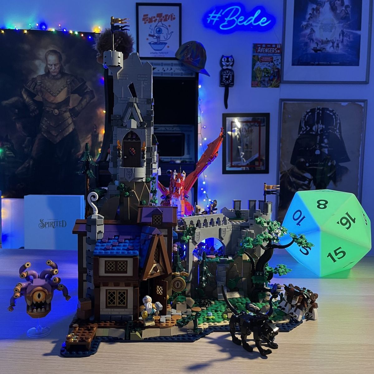 C'è un aneddoto divertente su questa cosa. Una delle prime cose che volevano fare col Drago era far sì che avesse dei pollici. Nella fisiologia classica di D&D hanno un artiglio posteriore che può fungere proprio da pollice opponibile se c'è necessità. Questa è stata la prima cosa che hanno voluto aggiungere. Poi, disseminati per tutto il set, ci sono un mucchio di dettagli e riferimenti, dal cubo gelatinoso, ai black pudding, il Beholder... Hanno aggiunto più easter egg e dettagli di quanti ne potessi inserire io anche per mere questioni di tempo. Anche questo è stato un processo molto interessante da osservare. La maggior parte di queste easter egg sono state aggiunte nel prodotto finito, non erano presenti nel mio design. Le ha messe Lego, le ha volute WotC, ma sono presente anche io, con un ritratto al muro sotto forma di sticker!