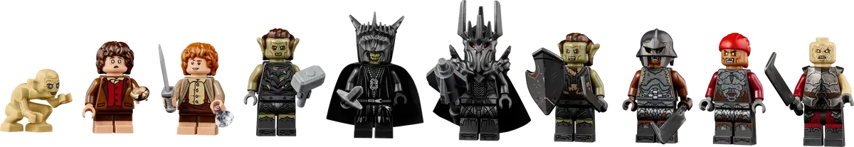 Ricco di accessori a tema cinematografico: contiene diversi accessori, tra cui armature e gli elmi della Bocca di Sauron e di Sauron™, oltre all’anello, la luce di Elendil e la mazza di Sauron