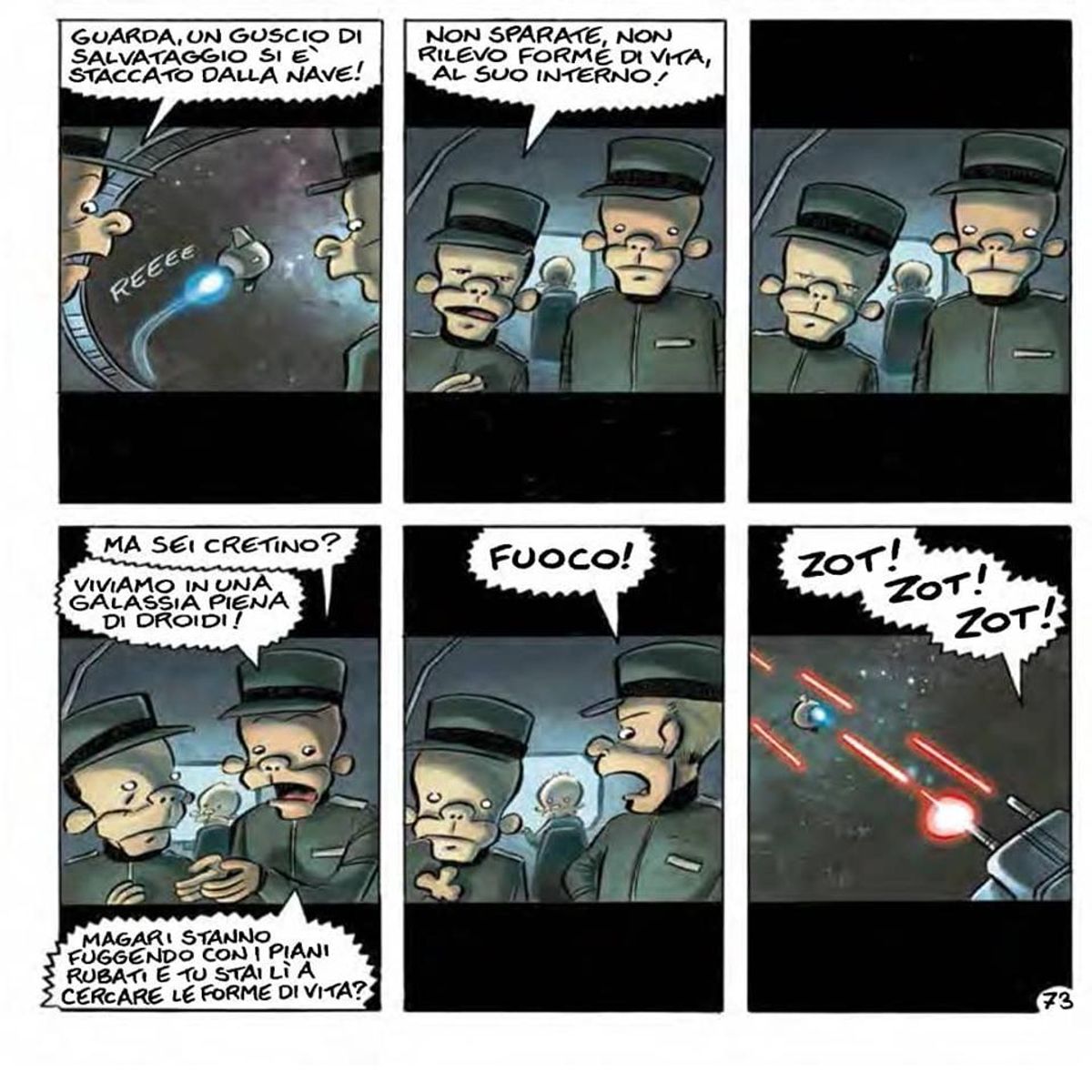 "Star Rats - Origini" raccoglie (a colori) i tre albi che sono la parodia dei tre film Episode I, II, III della saga di Star Wars. Quelli, per intendersi, dove lo sbadiglione si alternava al uottefak. Che adesso, poi, facciamo uscire Episode IX, vediamo chi se la gioca meglio, tra la trilogia dei prequel e quella dei sequel. Esce a Lucca Comics e poi lo trovate ovunque.