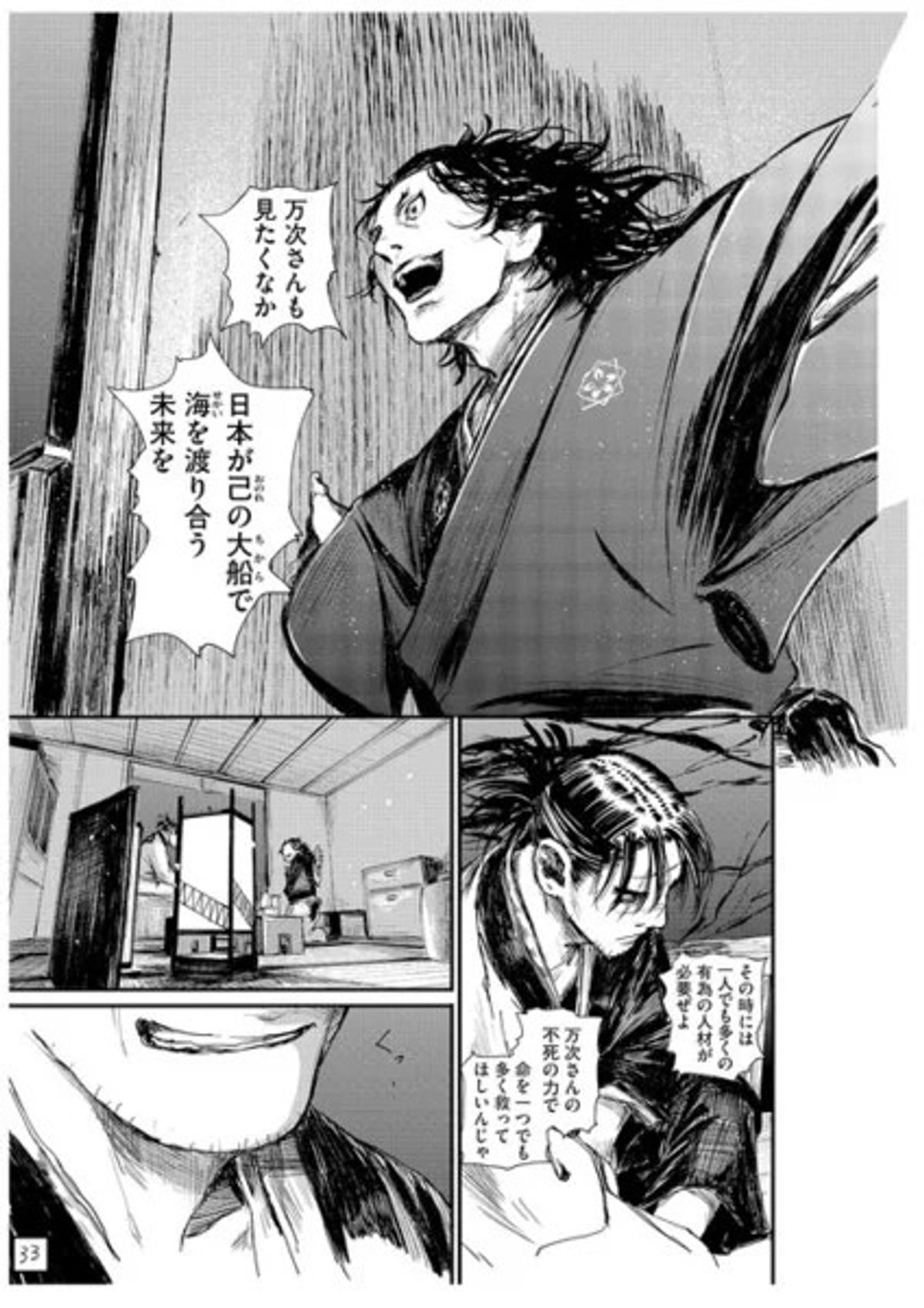 Il sequel sarà ambientato nel periodo Bakumatsu del IXX Secolo, che corrisponde alla fine del periodo Edo (la serie originale è invece ambientata agli inizi). Le vicende riguarderanno Manji, personaggio che vive in solitudine nel dominio di Tosa, finché non decide di recarsi nella capitale; nel corso della storia si troverà ad affrontare i più forti guerrieri dell'epoca.Nell’anteprima apparsa sul mensile - che potete vedere nella gallery in coda all’articolo - vengono mostrati diversi personaggi storici, tra cui Sakamoto Ryoma e Okita Souji, Kondo Isami e Hijikata Toshizou, membri della Shinsengumi.