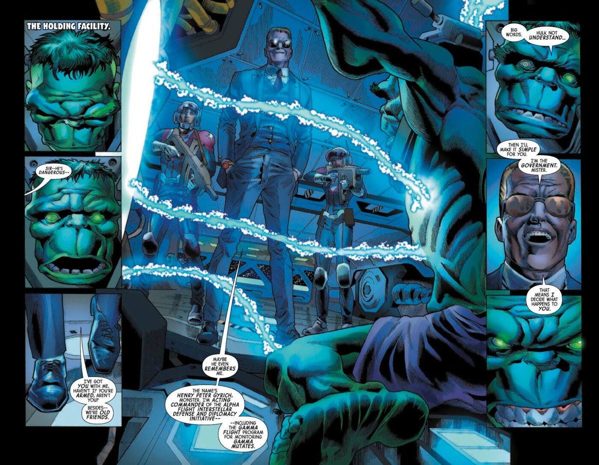 Alla fine della serie, potrei avere ancora qualcosa da dire sulla natura dei raggi Gamma e su altre idee di genere cosmico che ho citato nelle storie, ma una volta impacchettata questa run, penso che avrò detto tutto ciò che volevo sul personaggio di Bruce Banner e sui suoi alter-ego. Gli scrittori di Hulk tendono a tornare al personaggio, quindi mai dire mai, ma probabilmente farò l'equivalente di mandare biglietti di auguri di Natale per posta, a meno che non mi prenda per la gola un'altra vicenda di lungo respiro che mi si appiccichi addosso. Ma è improbabile che mi capiti due volte con lo stesso personaggio.